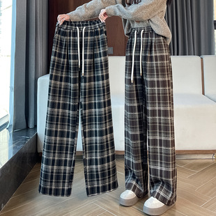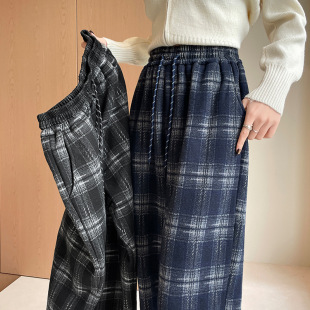 2025秋冬新款休闲裤格子阔腿裤日韩宽松直筒长裤子加绒加厚羊羔绒