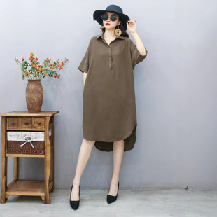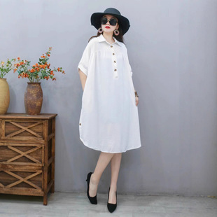 跨境东南亚风夏季连衣裙短袖宽松大码女装天丝麻欧美外贸裙子长衫