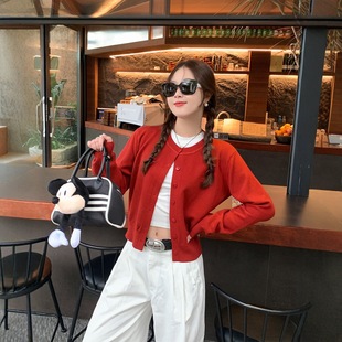 秋冬灰色毛衣针织上衣女红色开衫黑色外套女秋装新款长袖纯色百搭