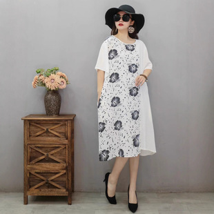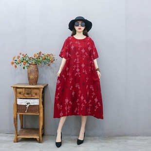 跨境东南亚风夏季连衣裙短袖宽松大码女装天丝麻欧美外贸裙子时尚