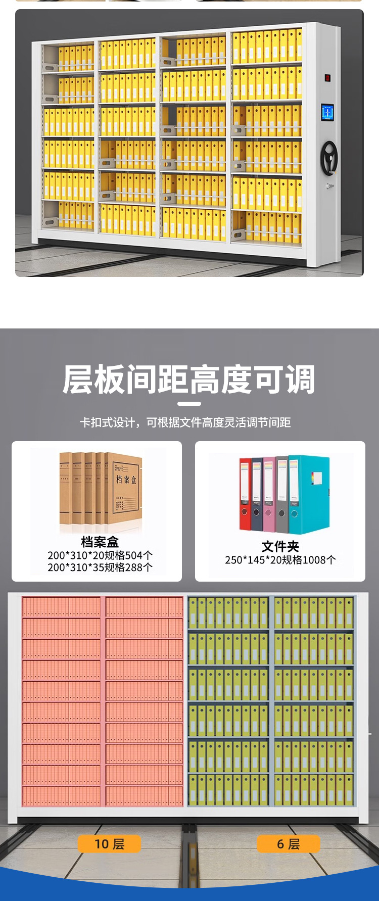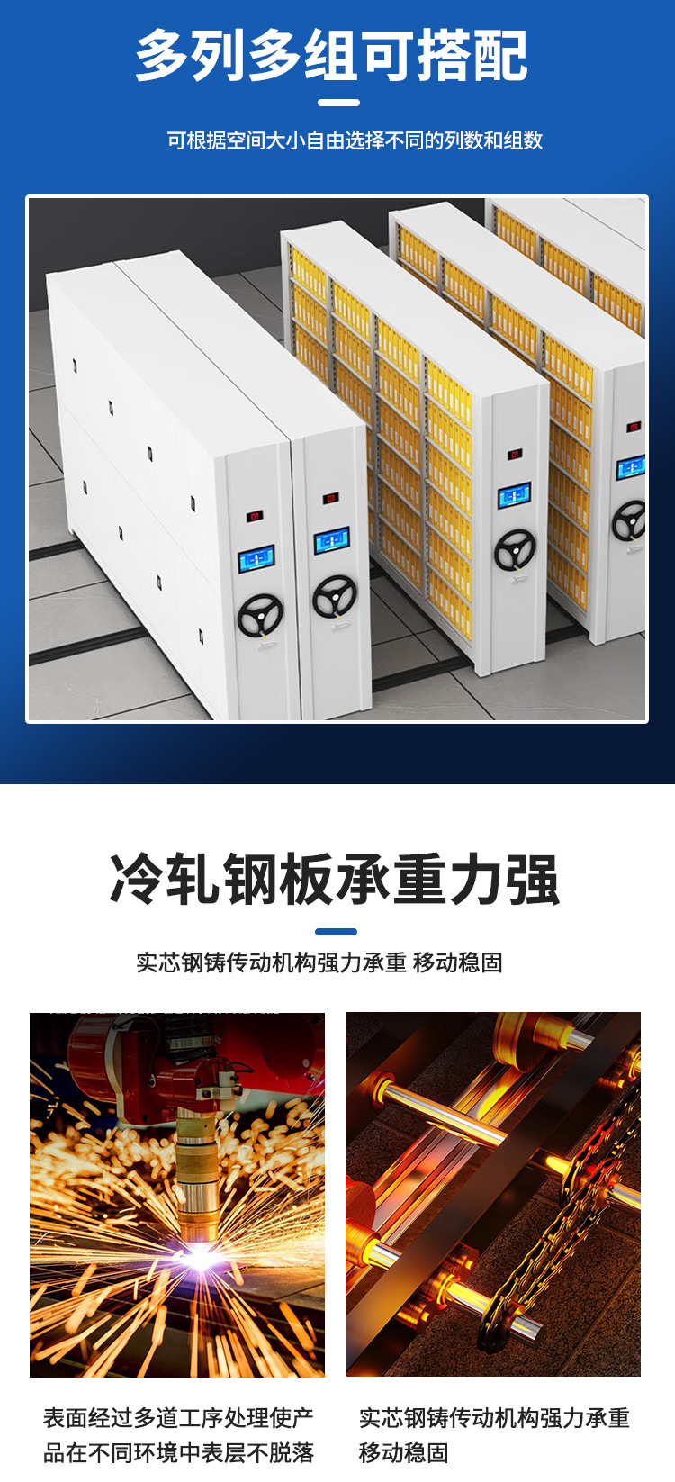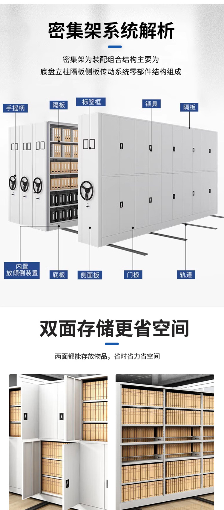 Sistem rak kompak cerdas, lemari kompak ruang arsip, lemari ruang arsip bertenaga engkol tangan dan listrik, lemari penyimpanan dokumen baja, versi yang diperkuat.