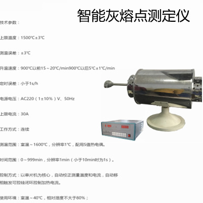 灰熔融温度测定过程中,用智能一体化马弗炉制成灰,将灰制成灰锥,再用微机灰熔点测定仪测定其在弱还原性气氛下的熔融特征温度。
