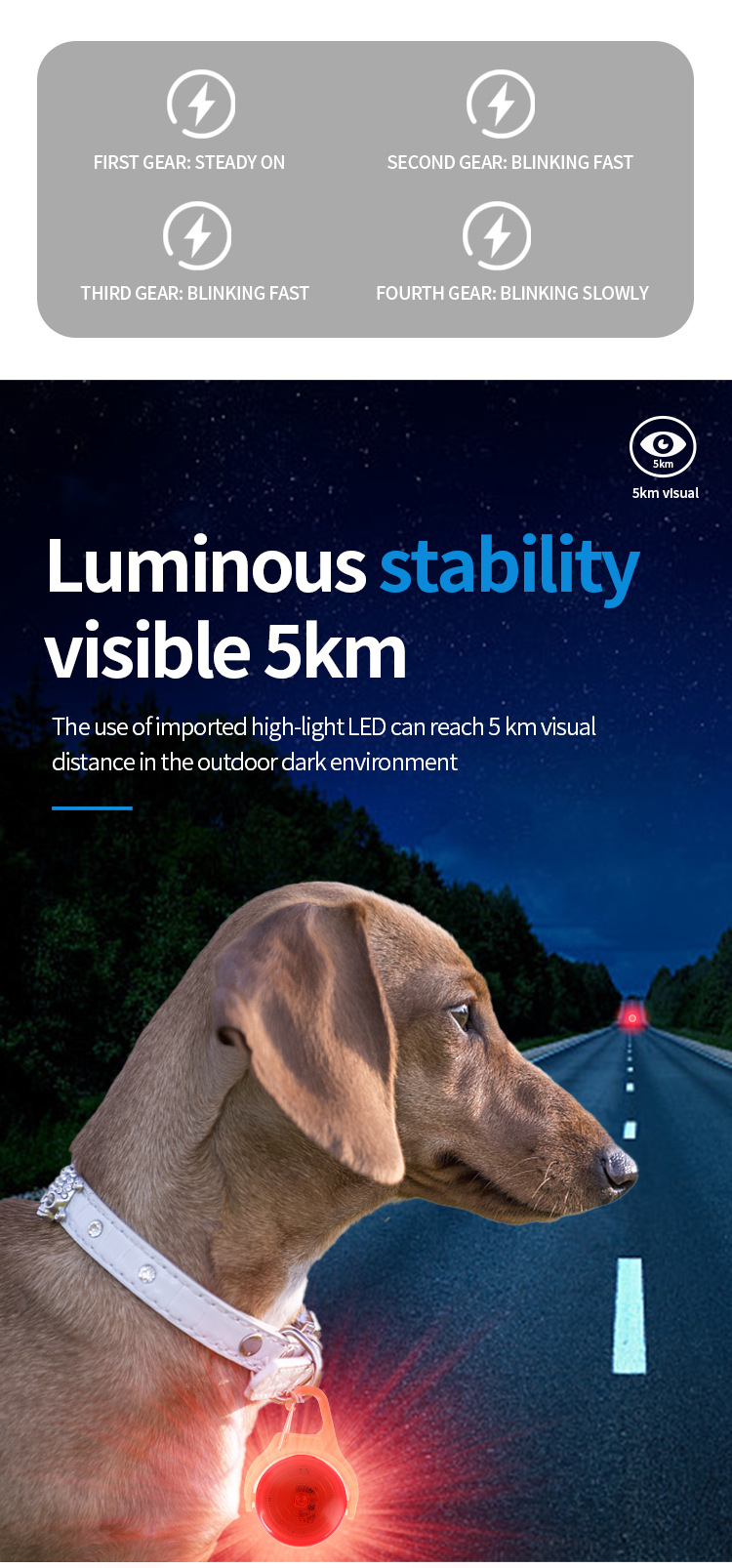 5ABONE Lampu Peringatan Hewan Peliharaan-IPX8 tahan air, cerdas, antihilang dan ringan