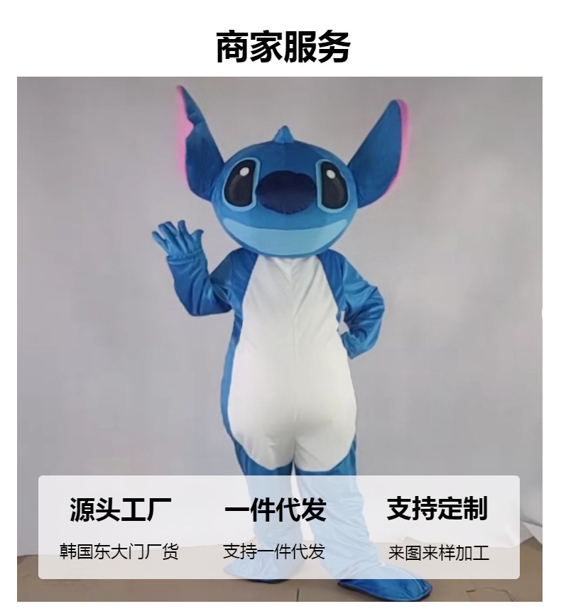 Stitch kostum boneka bintang bayi stitch pakaian boneka berjalan boneka kartun penutup kepala bermain pakaian cos