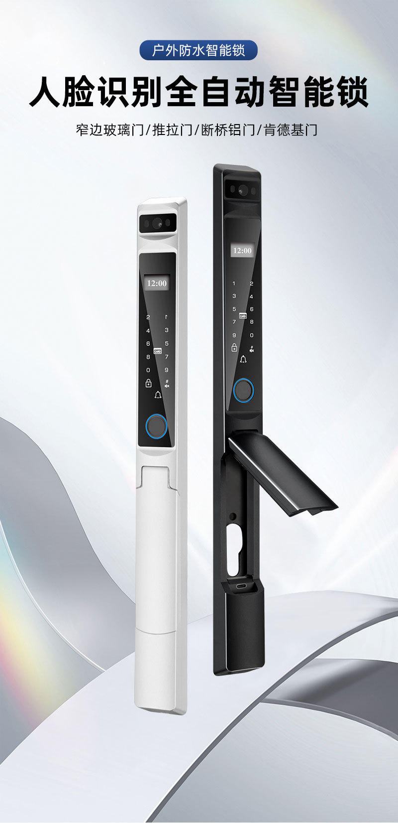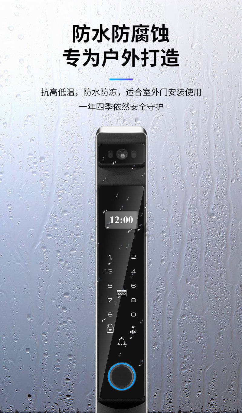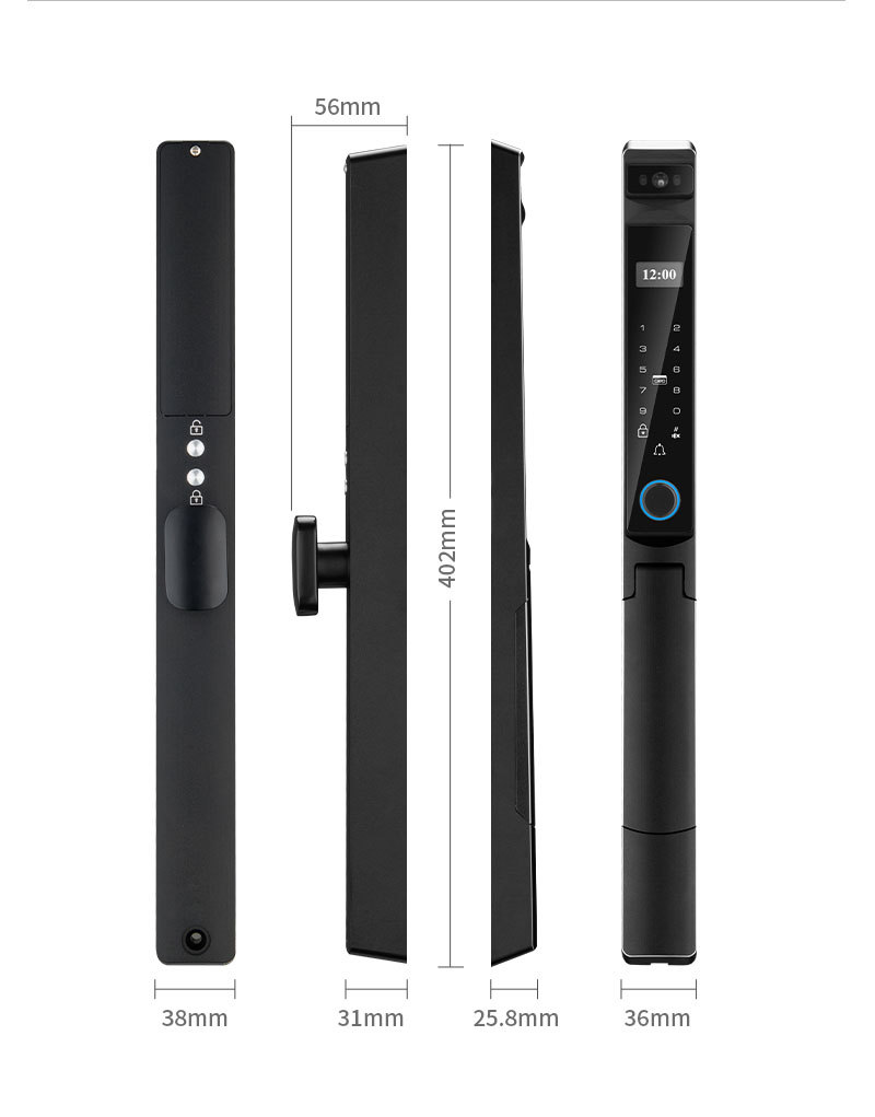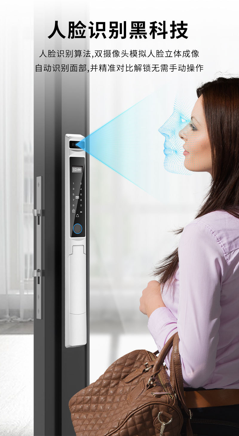 Kunci sidik jari tahan air dengan pengenalan wajah otomatis, desain aluminium bergaya grafiti, pembukaan kunci jarak jauh, kunci pintar khusus untuk perdagangan luar negeri.