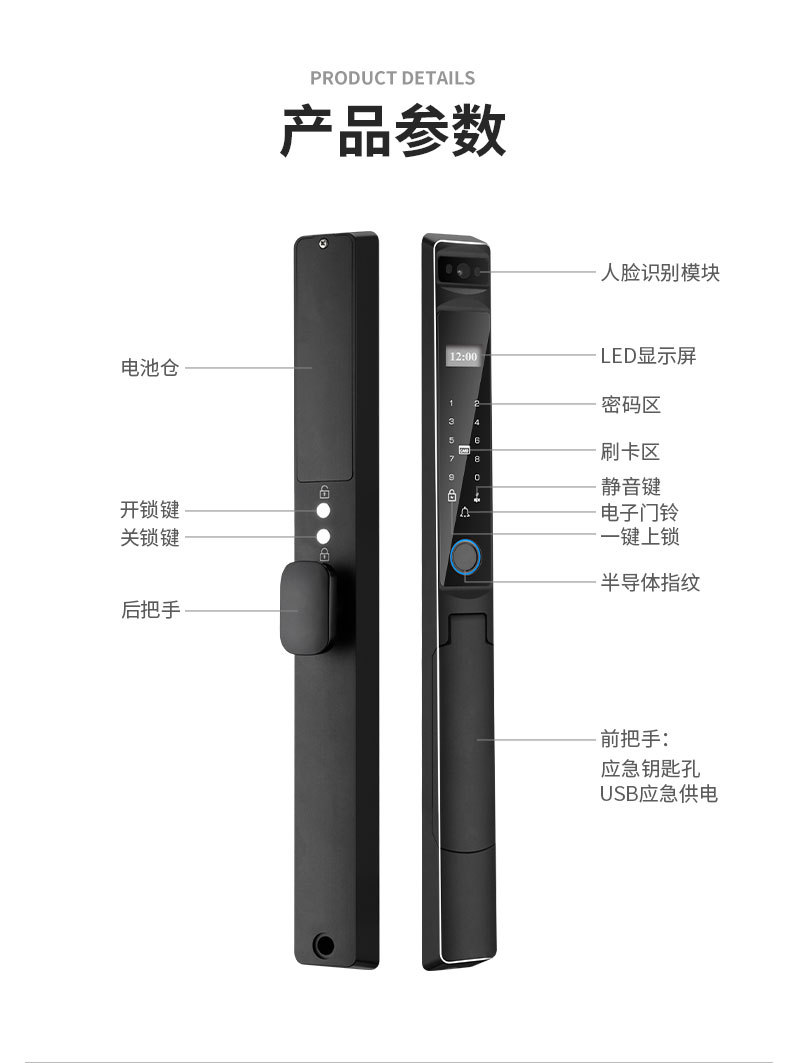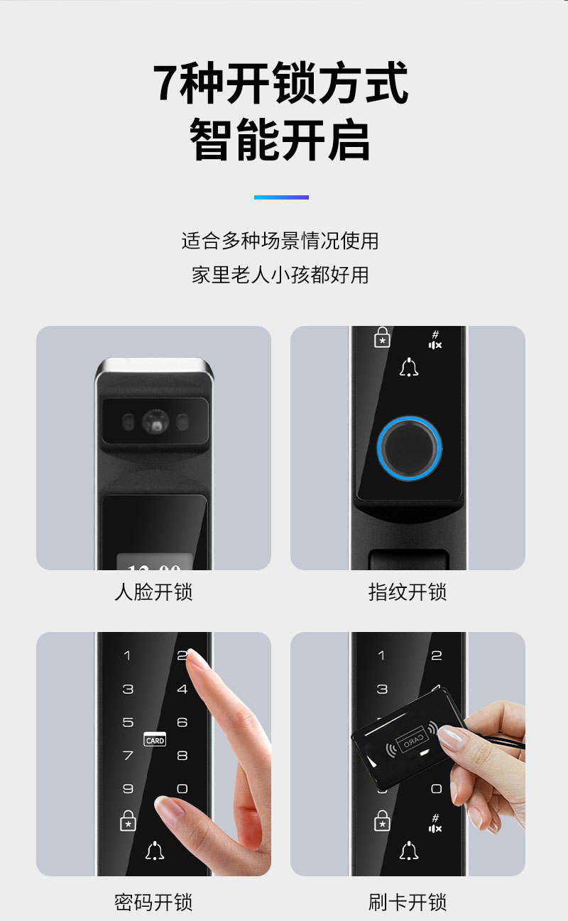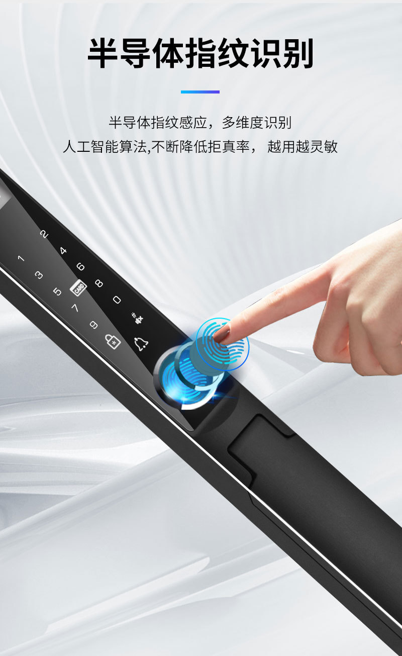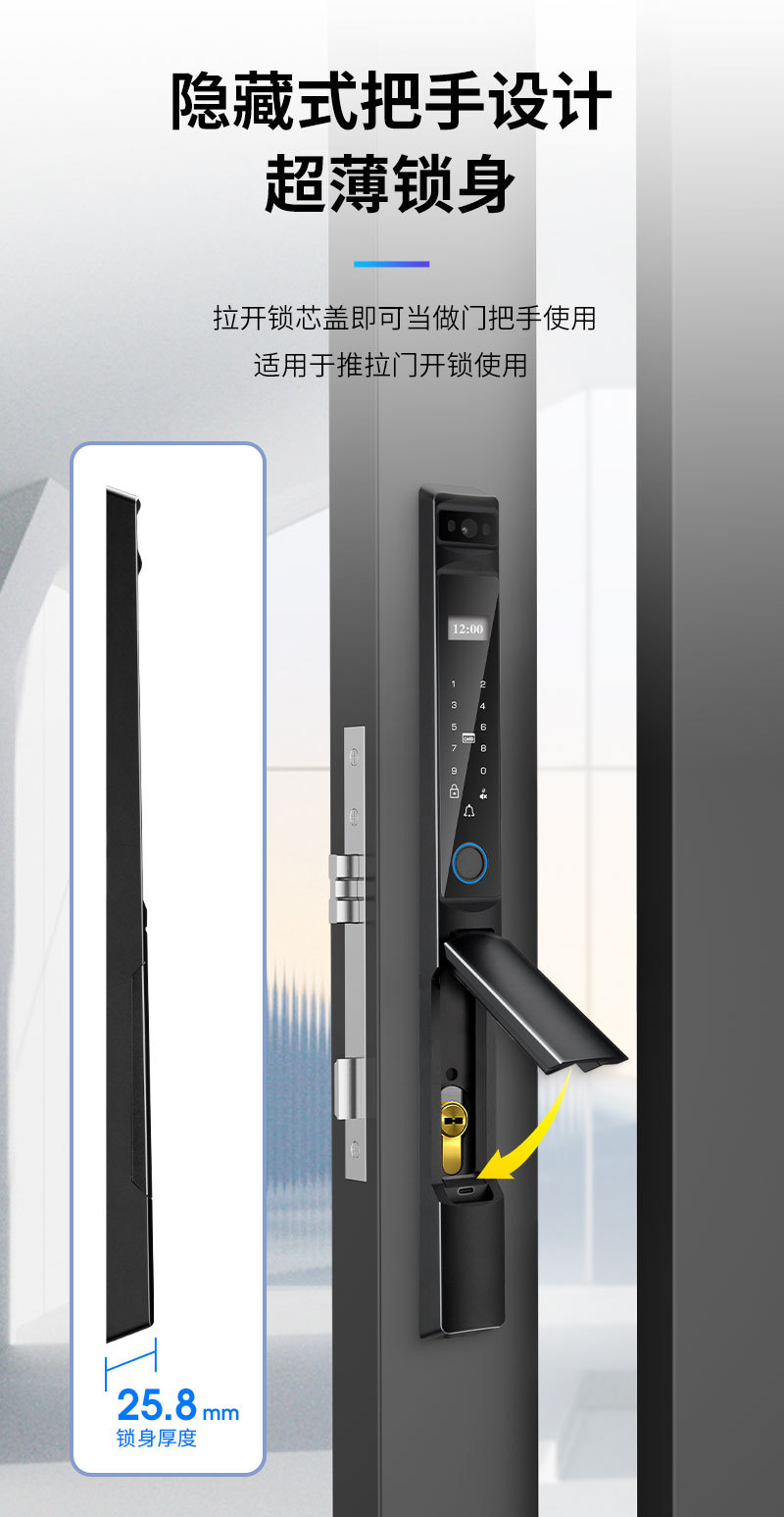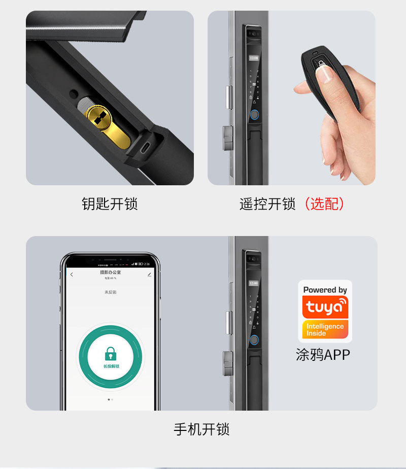 Kunci sidik jari tahan air dengan pengenalan wajah otomatis, desain aluminium bergaya grafiti, pembukaan kunci jarak jauh, kunci pintar khusus untuk perdagangan luar negeri.