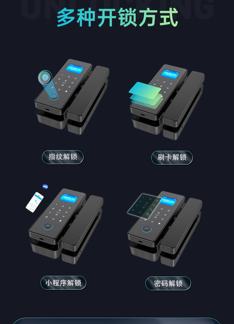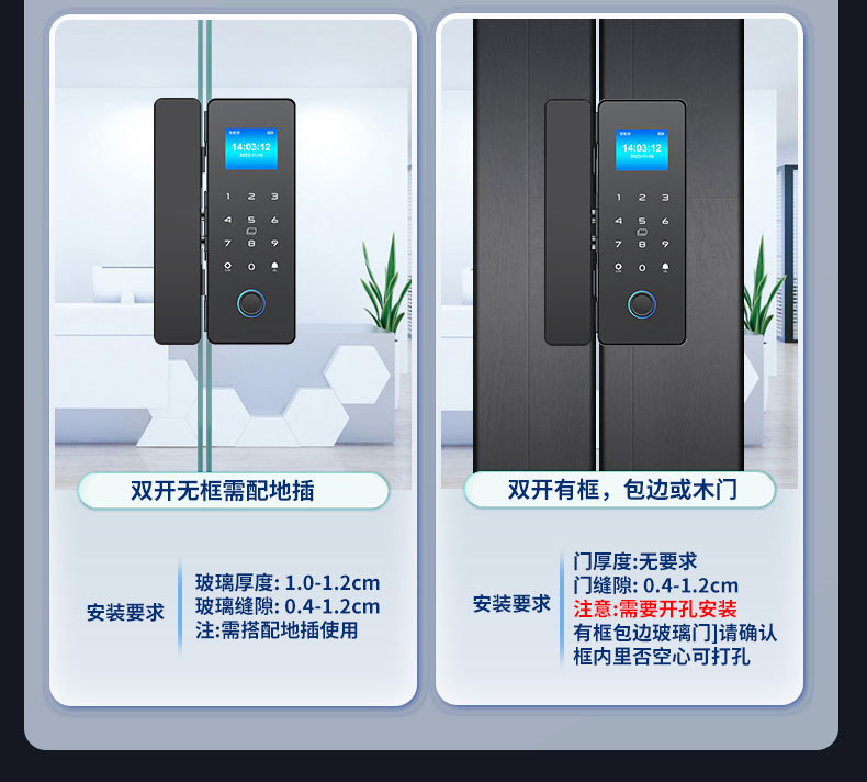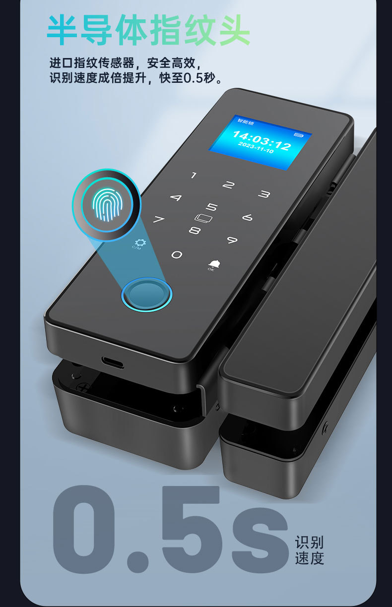 Kunci pintu kaca kata sandi, kunci Kantor tanpa lubang, kunci Kehadiran sidik jari berbingkai tunggal dan ganda, kunci pintar pintu pabrik grosir