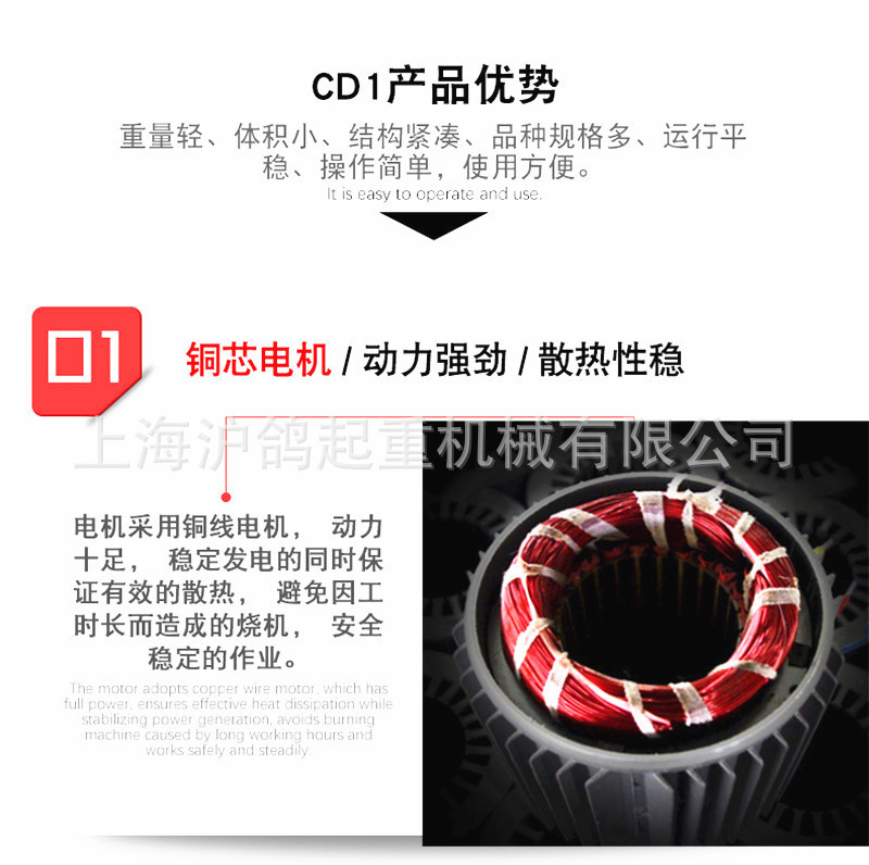 Katrol listrik tali kawat tipe CD1, 2T/3T/5T/6M/9m