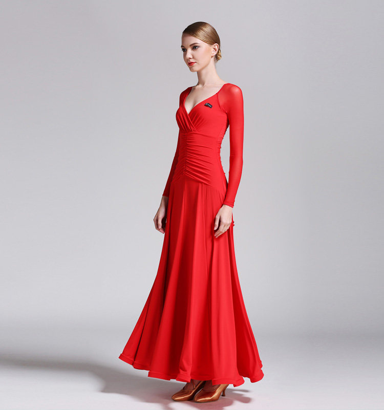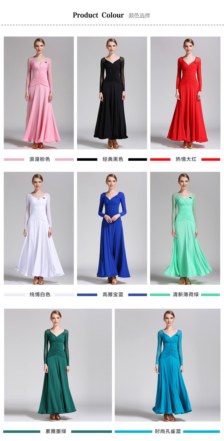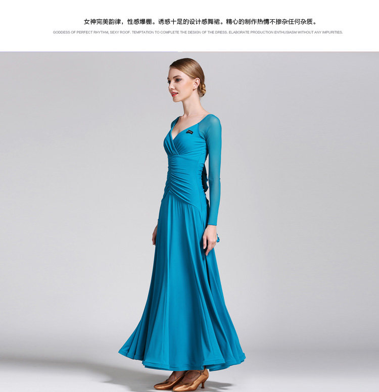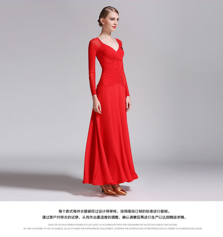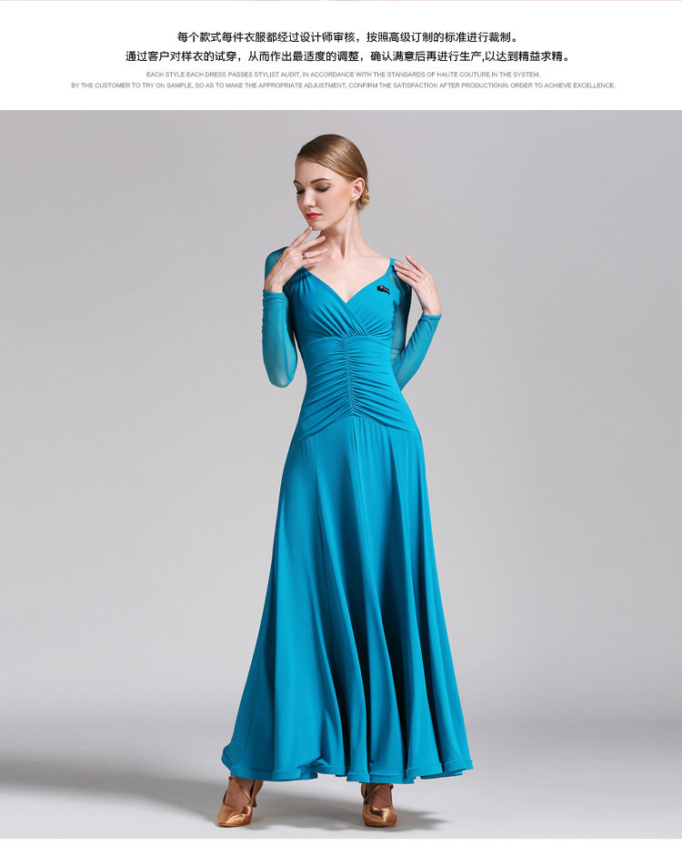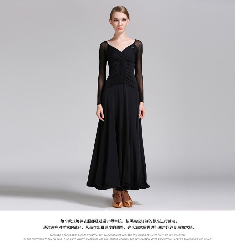 Yilin Feier gaun dansa modern gaun dansa baru S9007 gaun dansa standar nasional kerah V lengan panjang untuk wanita