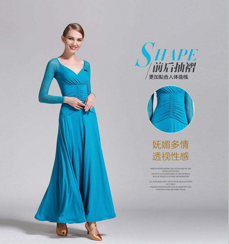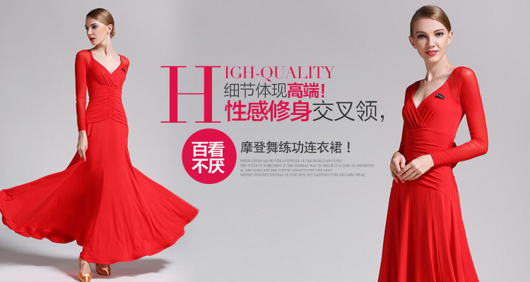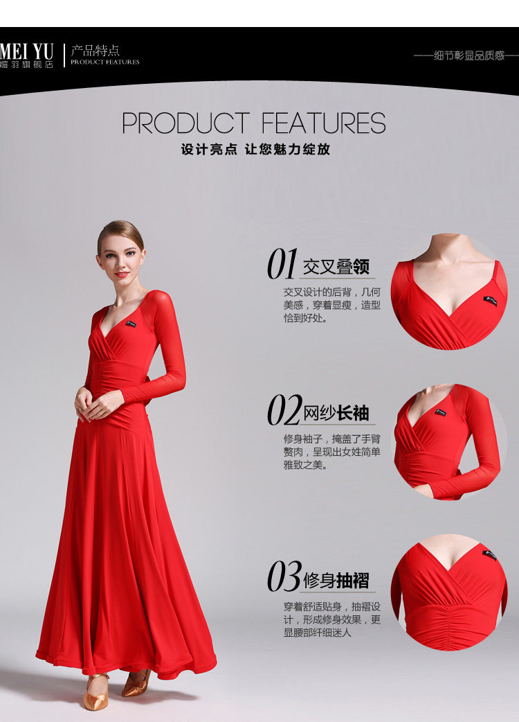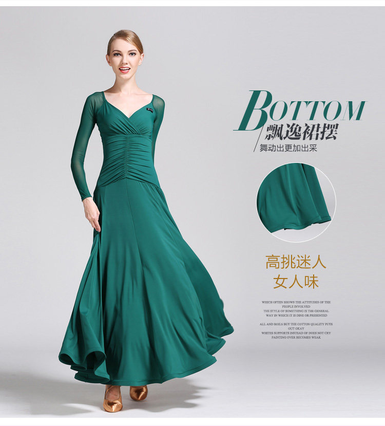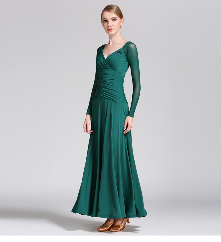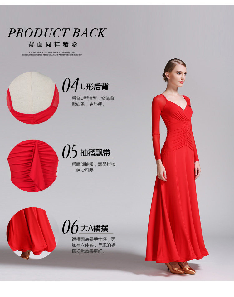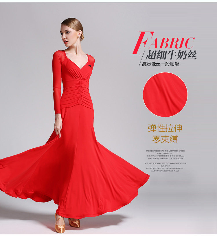 Yilin Feier gaun dansa modern gaun dansa baru S9007 gaun dansa standar nasional kerah V lengan panjang untuk wanita