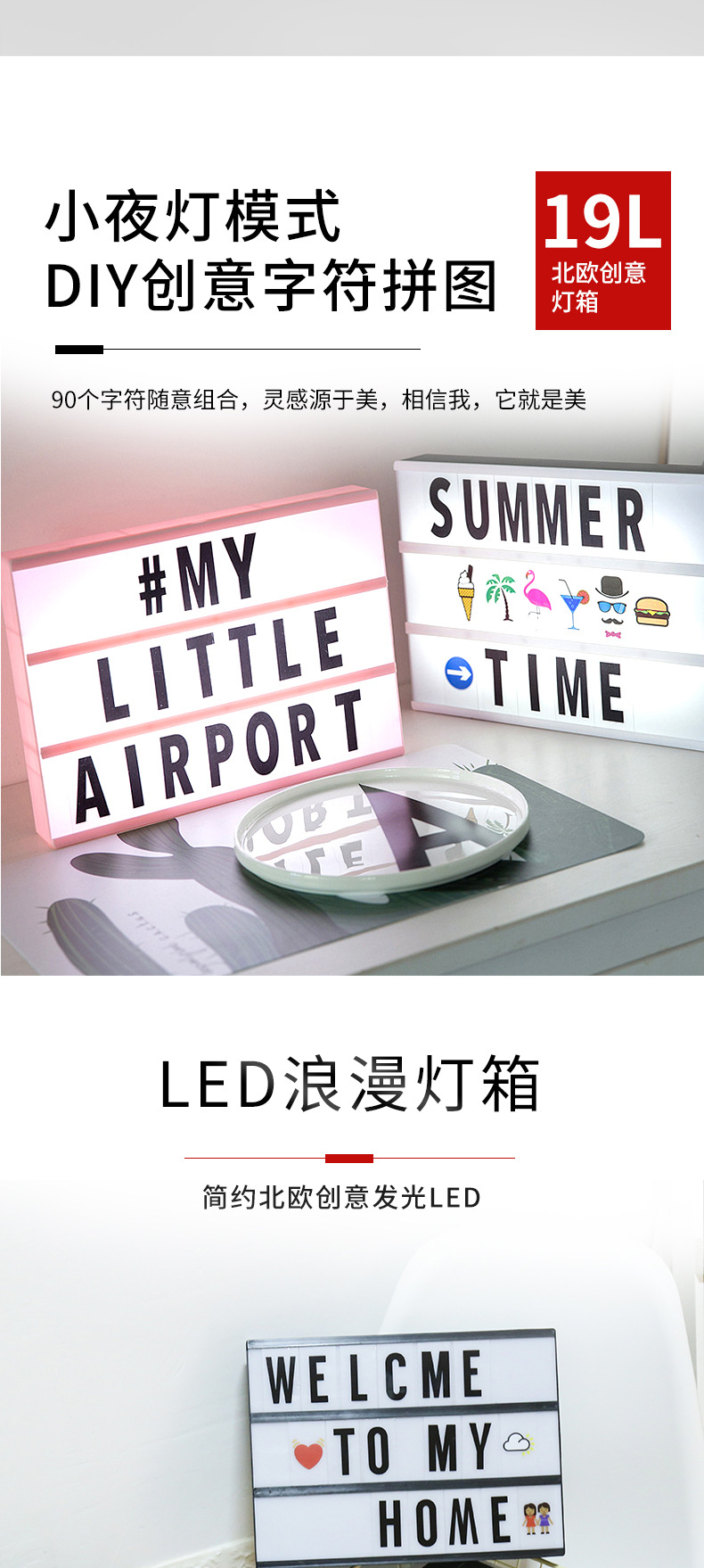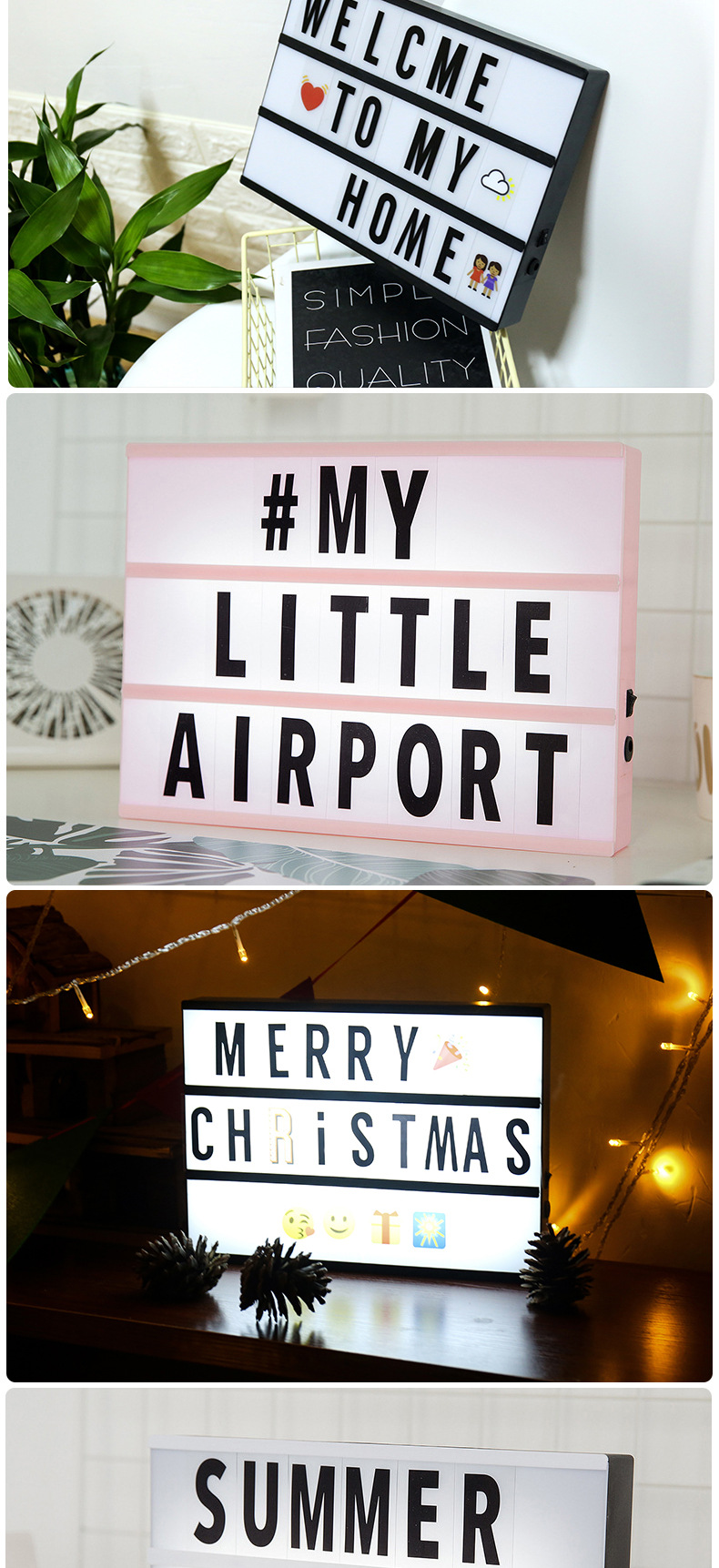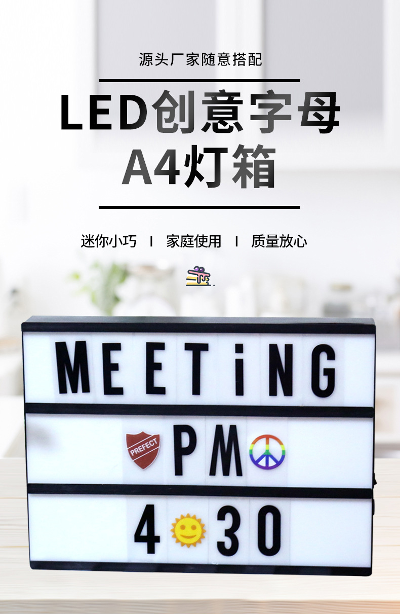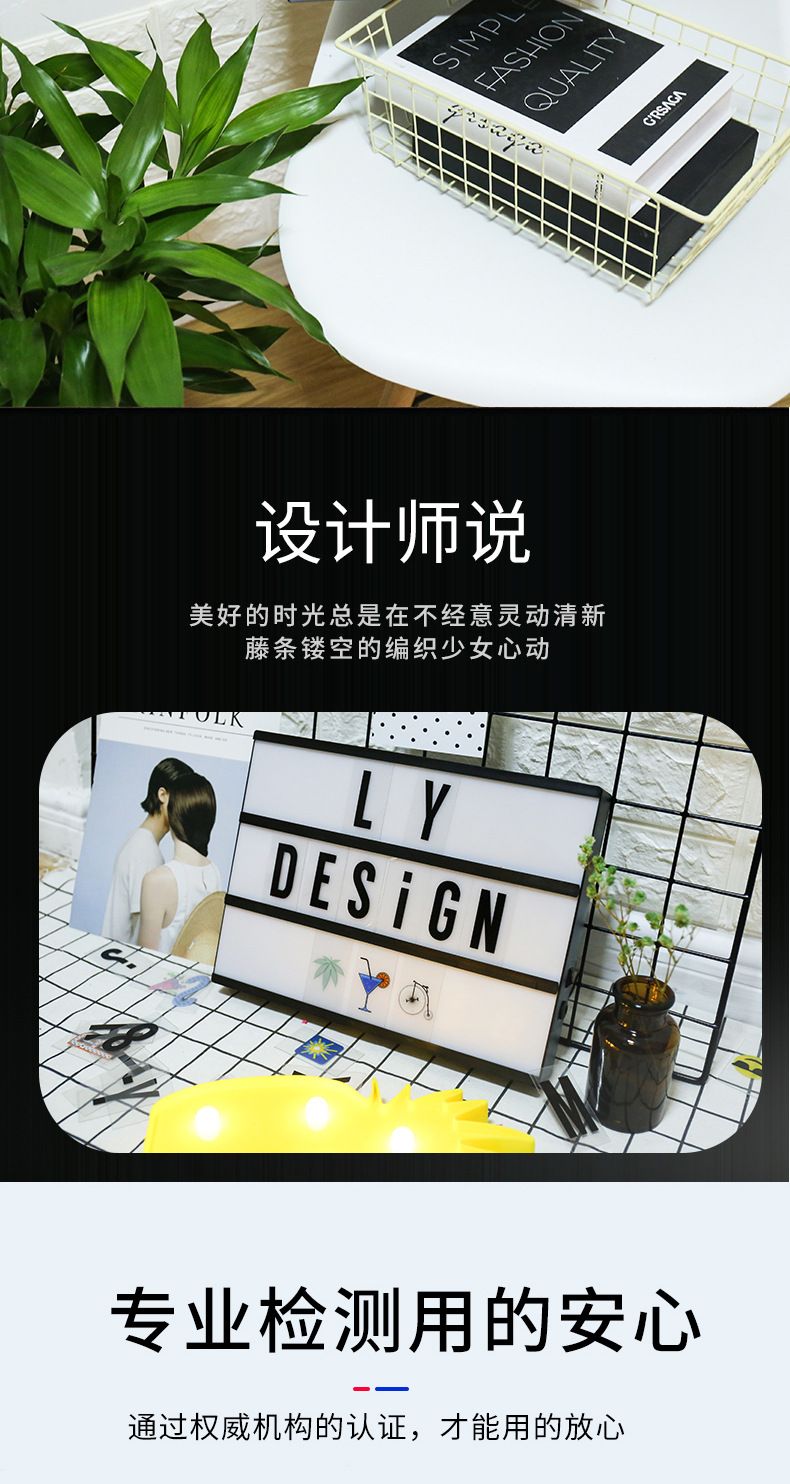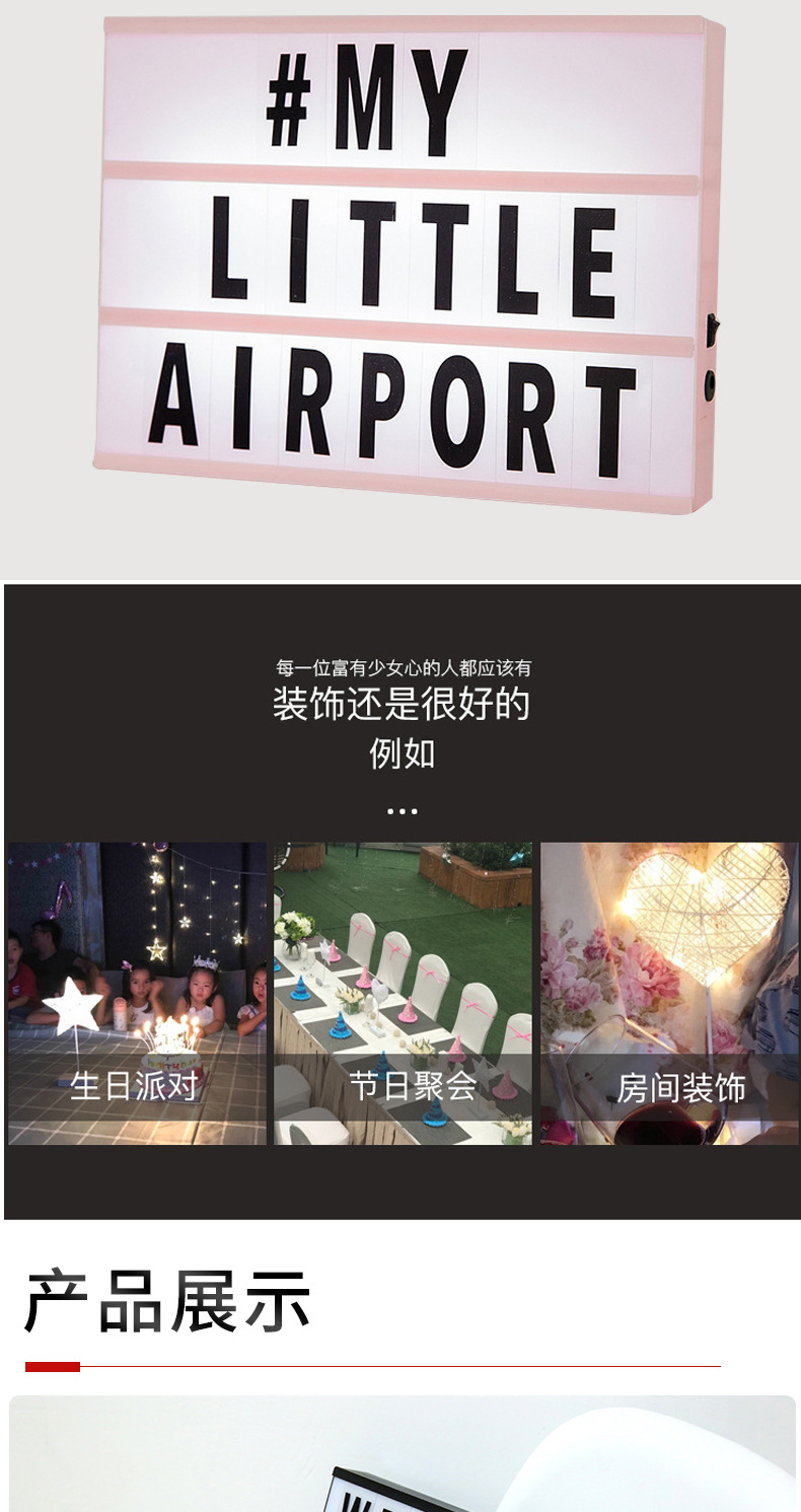 Kotak lampu huruf hitam A4 kreatif dengan lampu LED strip DIY dekorasi kamar anak perempuan gaya ornamen lampu dekoratif berbentuk hati.