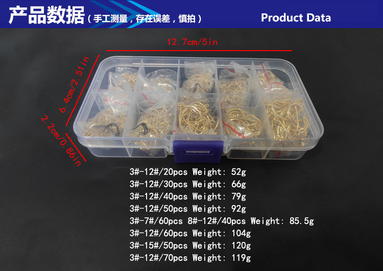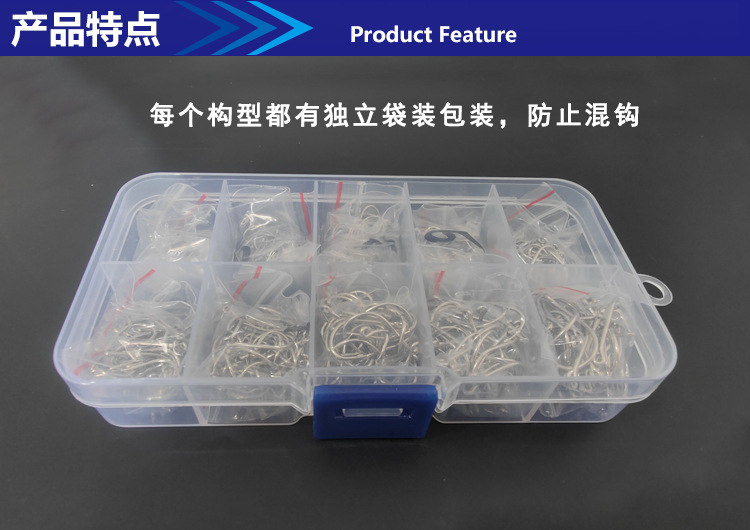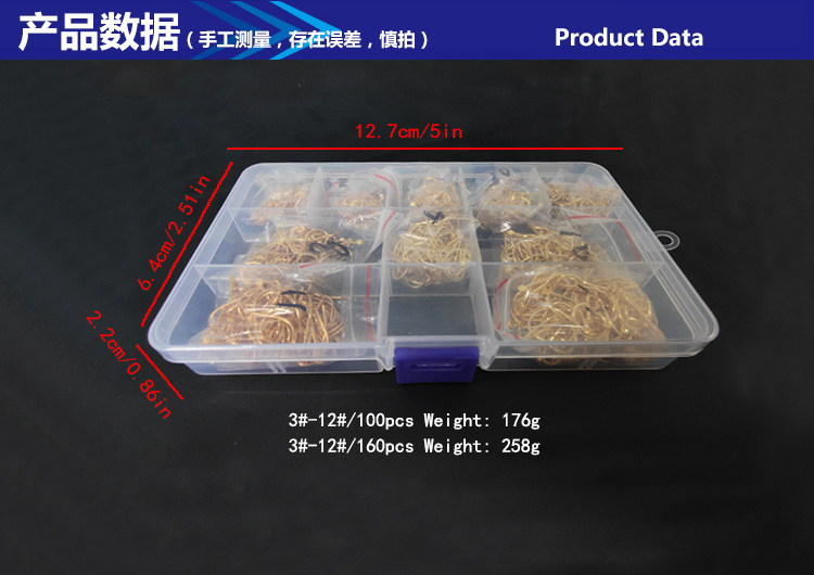 Fishhook Fu isini setelan mata kail tidak Lubang peralatan memancing 500 kotak hitam emas