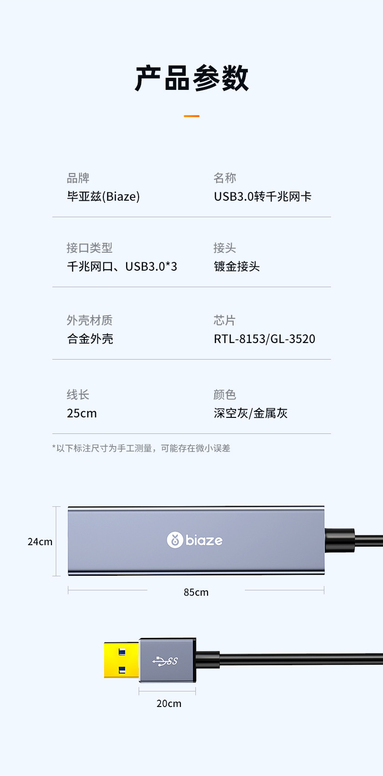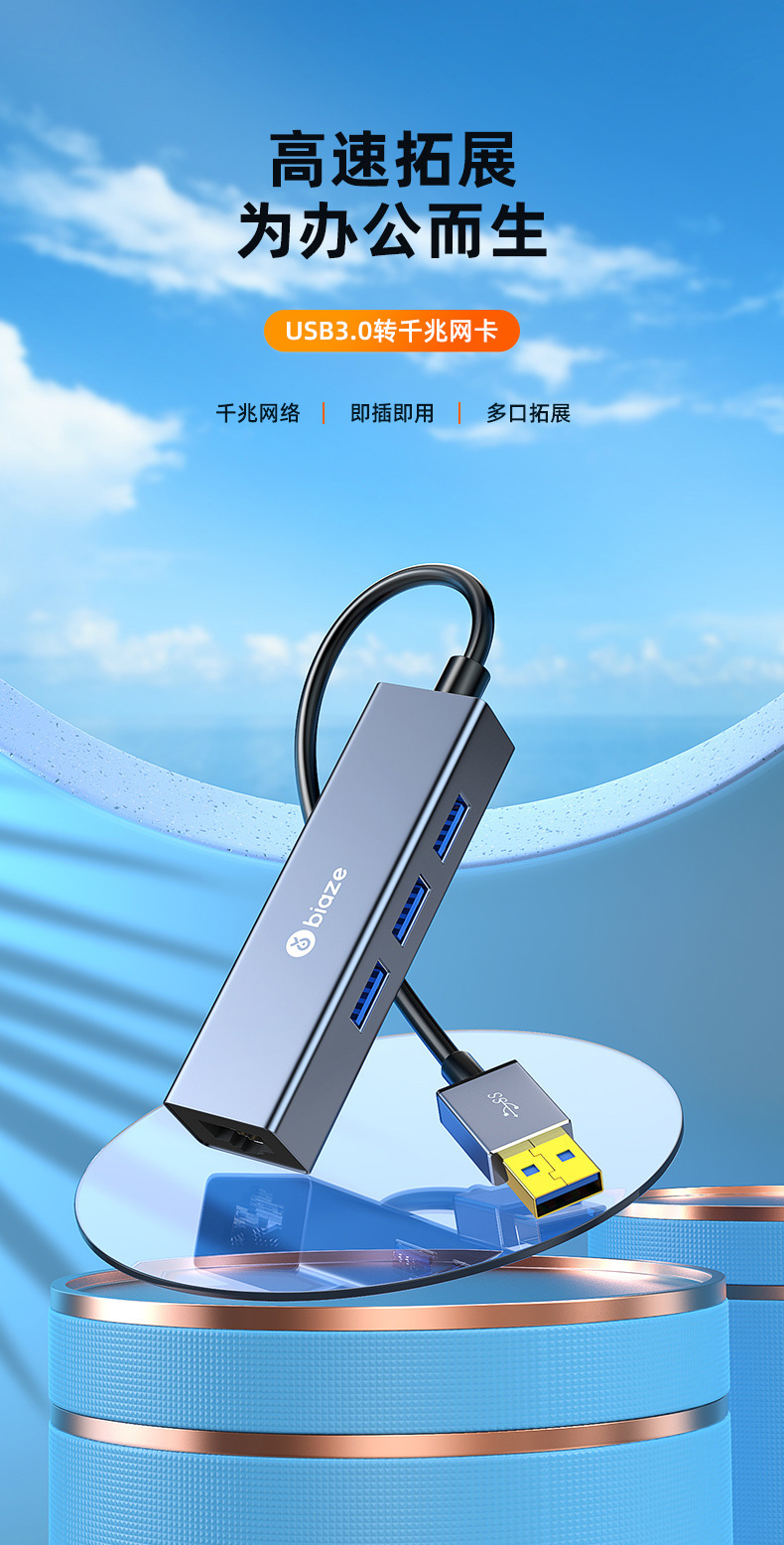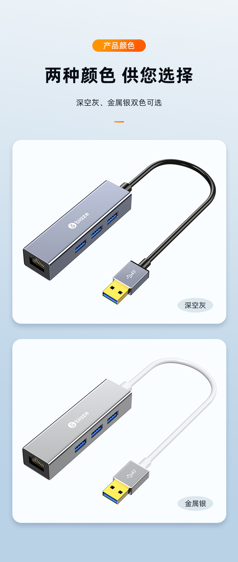 Biaz USB3.0 docking station adaptor kabel jaringan laptop kartu jaringan berkabel antarmuka RJ45 ekspansi multi-port