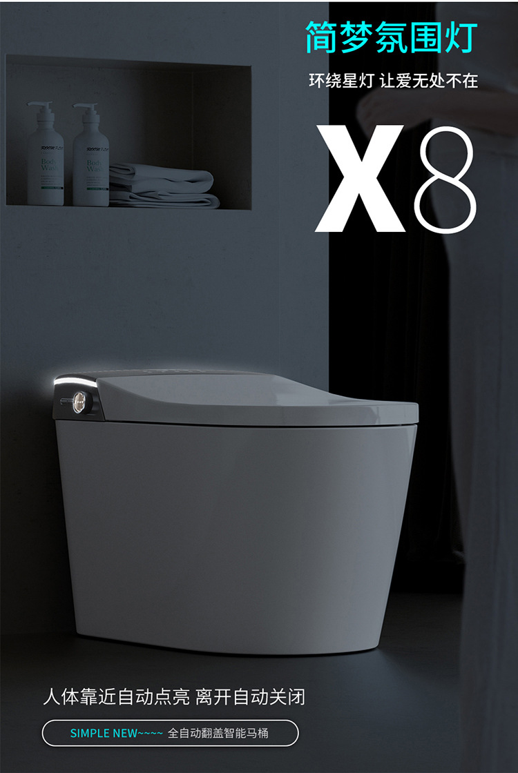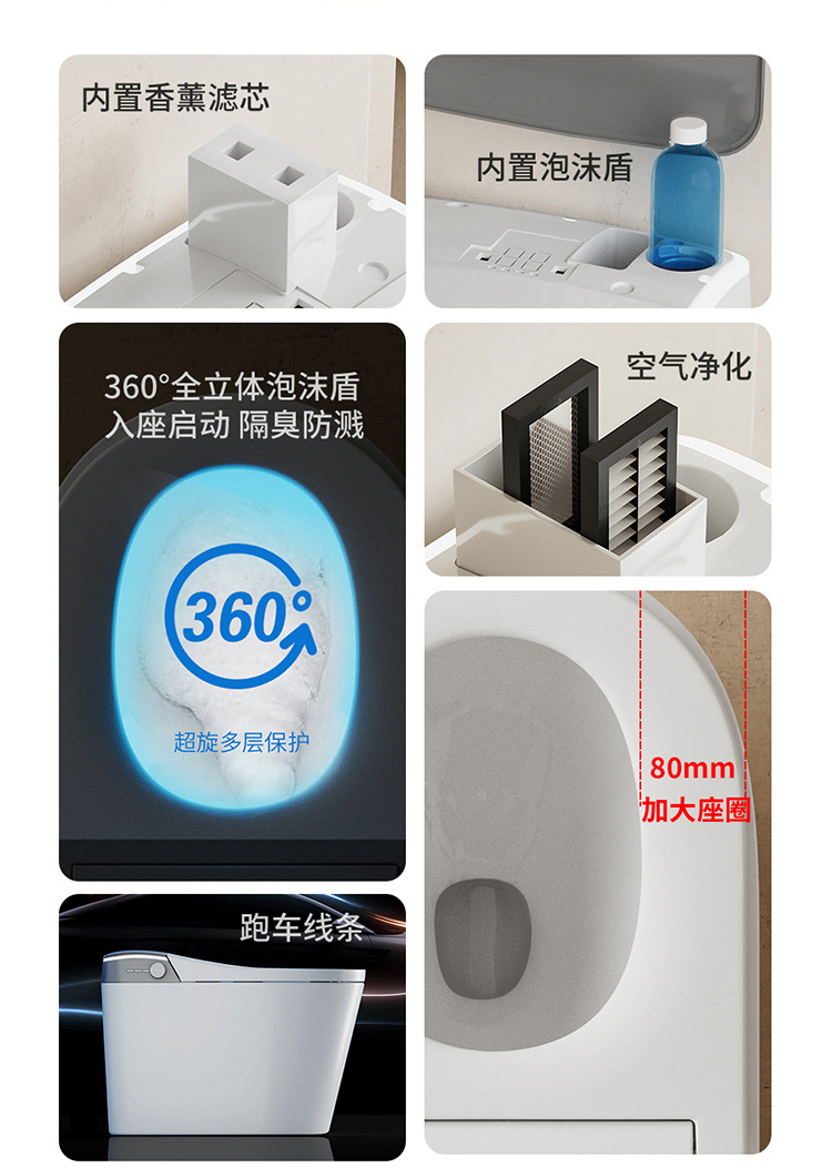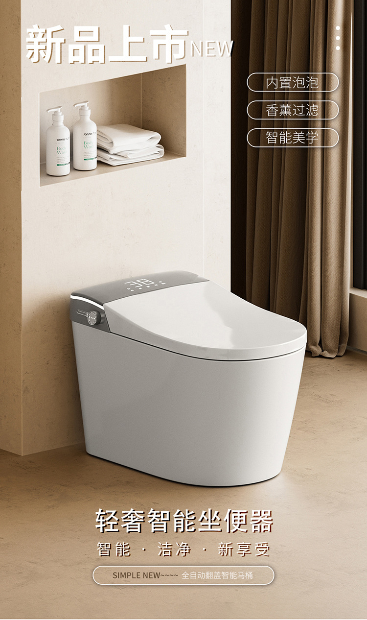 Toilet rumah tangga cerdas, toilet pemanas tempat duduk busa tanam otomatis lipat cerdas ringan