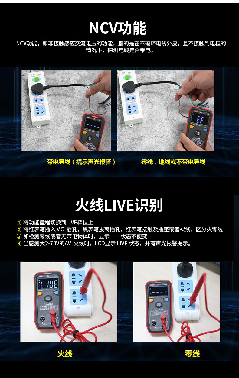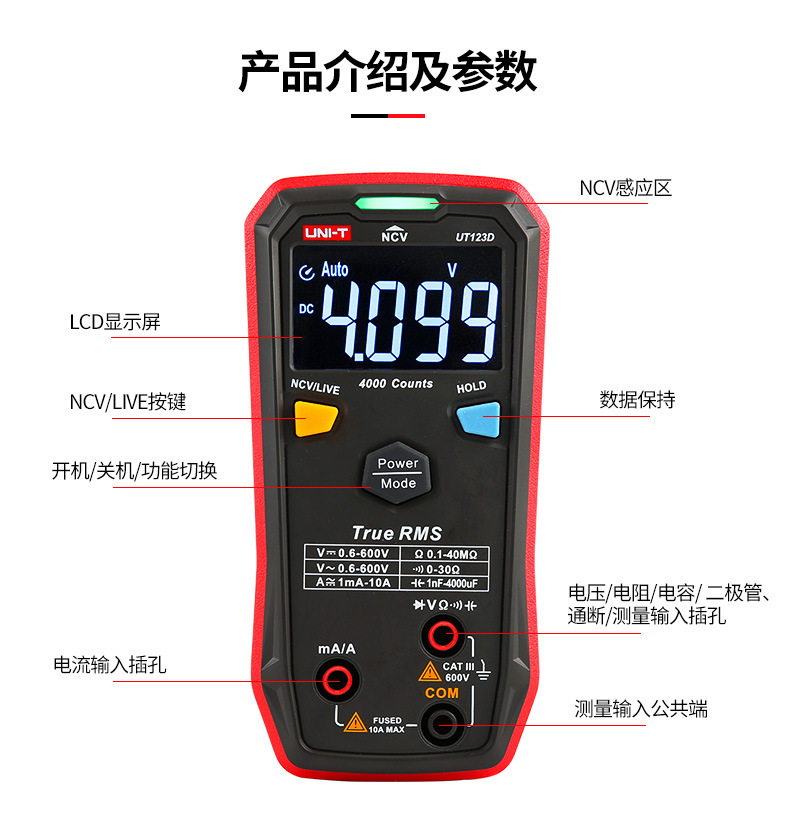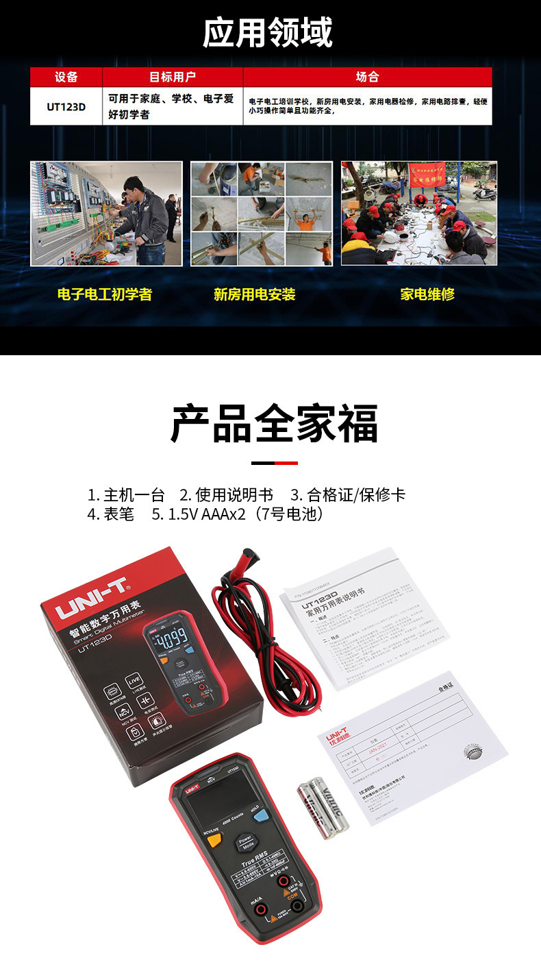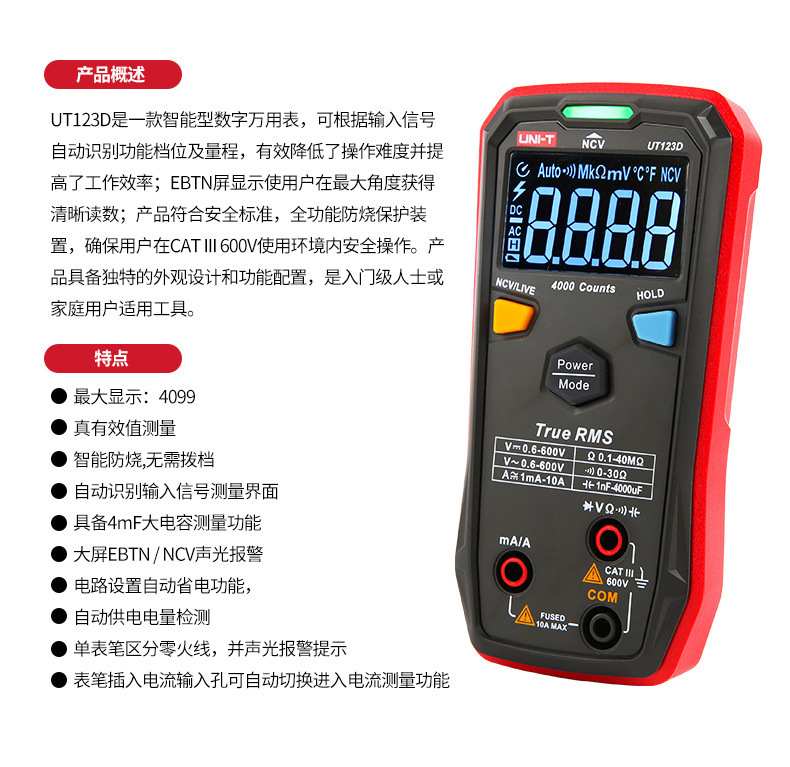 Unide multimeter digital UT123D, identifikasi otomatis non-stop multimeter cerdas mini elektrik Universal