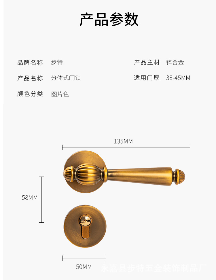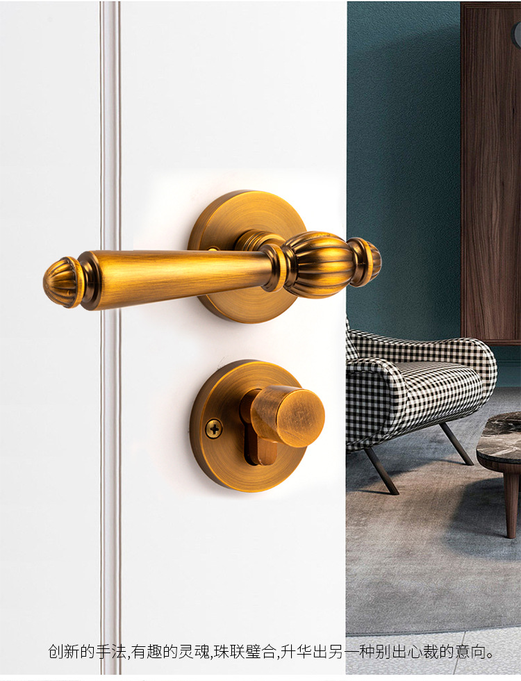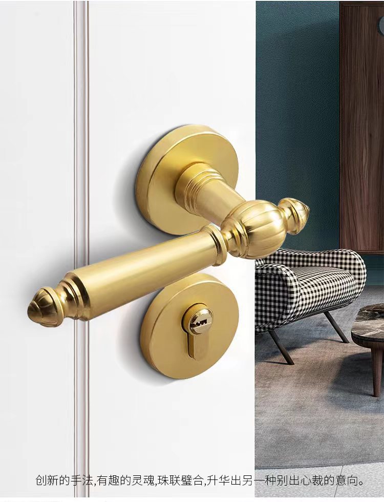 Kunci pintu kamar tidur, tutup magnetis dalam ruangan, emas terpisah, gagang pintu kamar universal Rumah Tangga