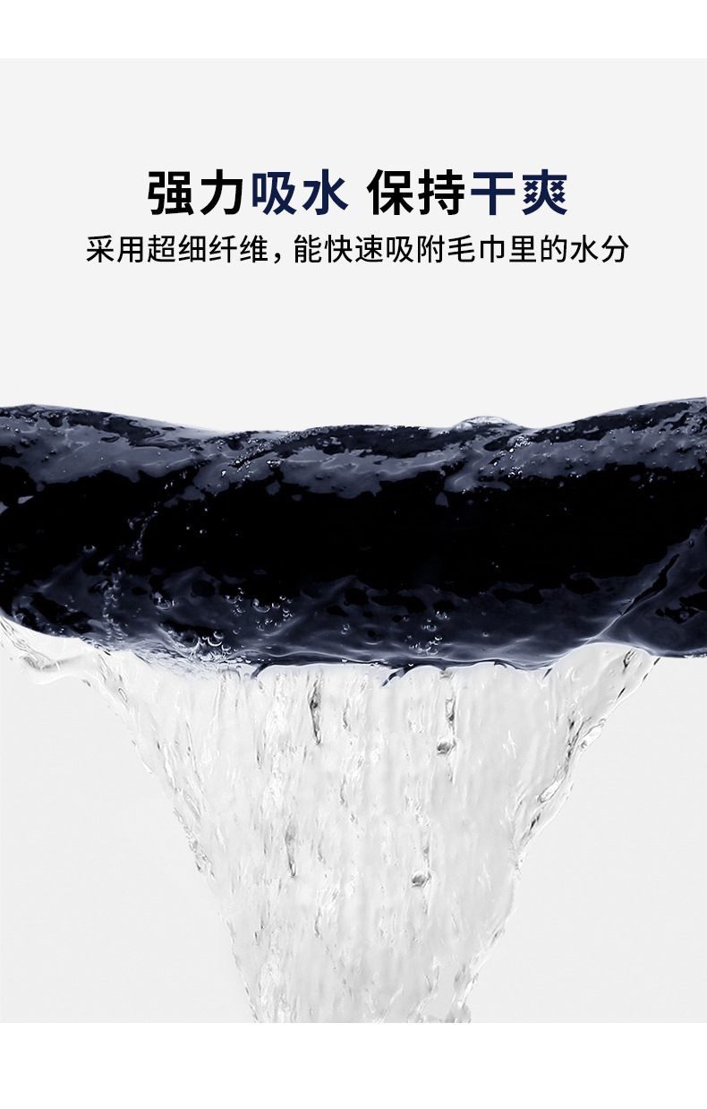 强力吸水 保持干爽,采用超细纤维,能快速吸附毛巾里的水分