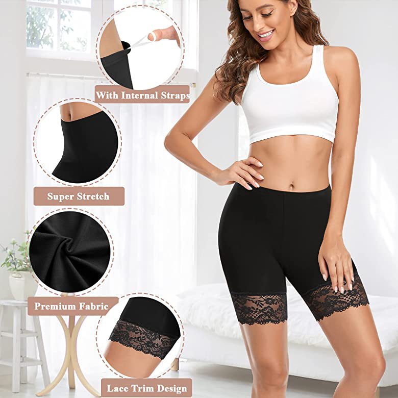Legging tanpa batas pinggang tinggi untuk wanita, celana legging olahraga ukuran ekstra besar, celana keselamatan anti-paparan renda, celana crop tidak keriting