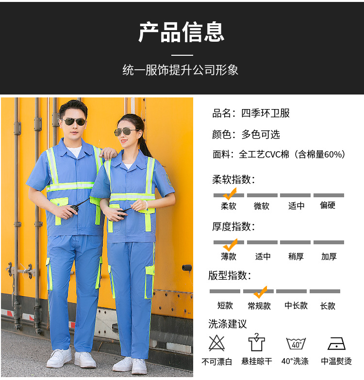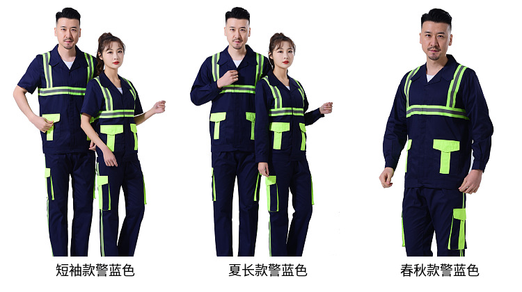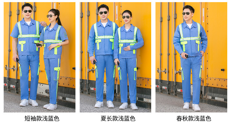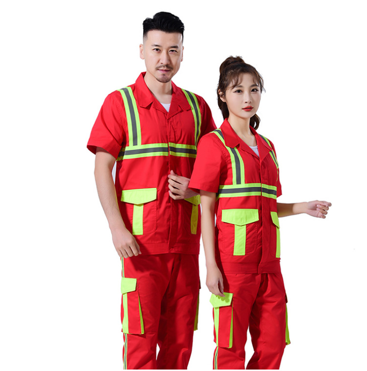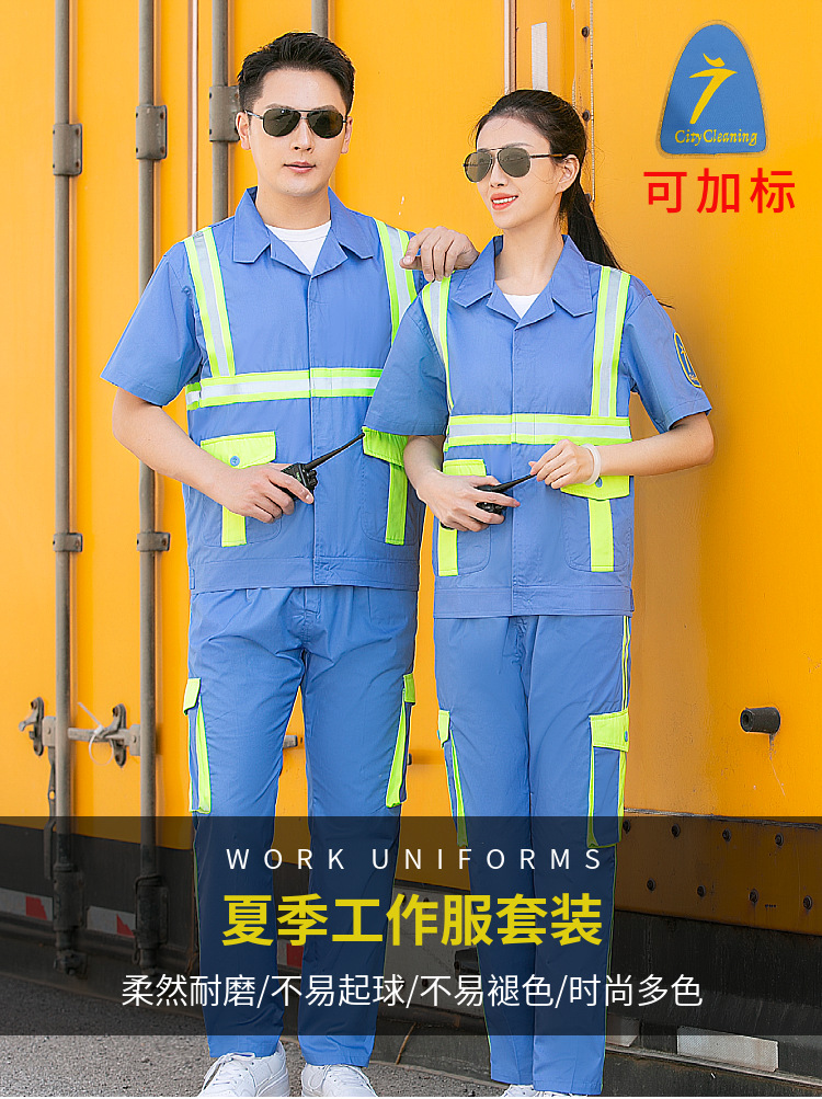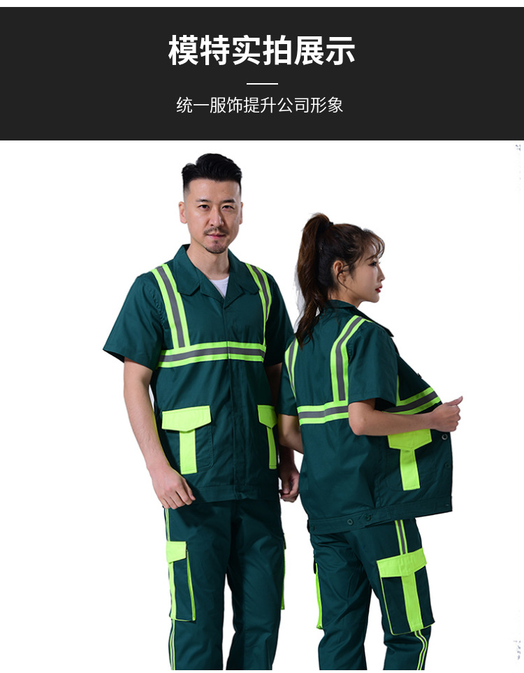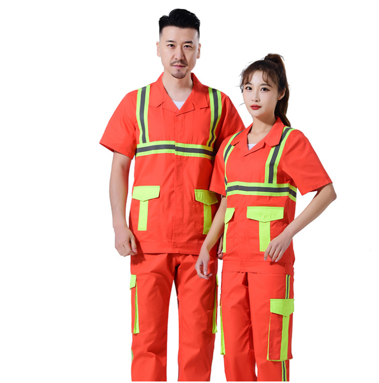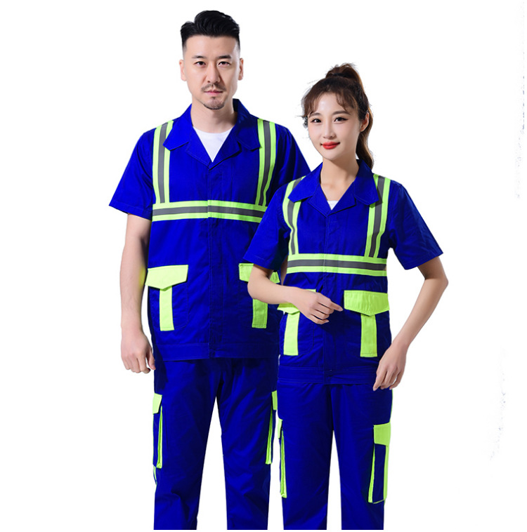 Setelan pakaian kerja untuk pria, perawatan taman, pembersihan, logistik, pakaian reflektif, pakaian pelindung tenaga kerja, pakaian sanitasi reflektif, lengan pendek
