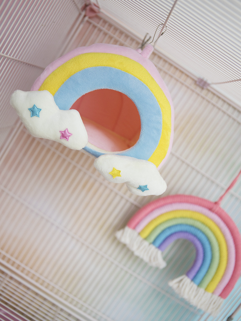 Sarang pelangi lucu untuk dua Musim perlengkapan hewan peliharaan kecil sarang katun tikar pendingin musim panas sarang putri terlihat tinggi
