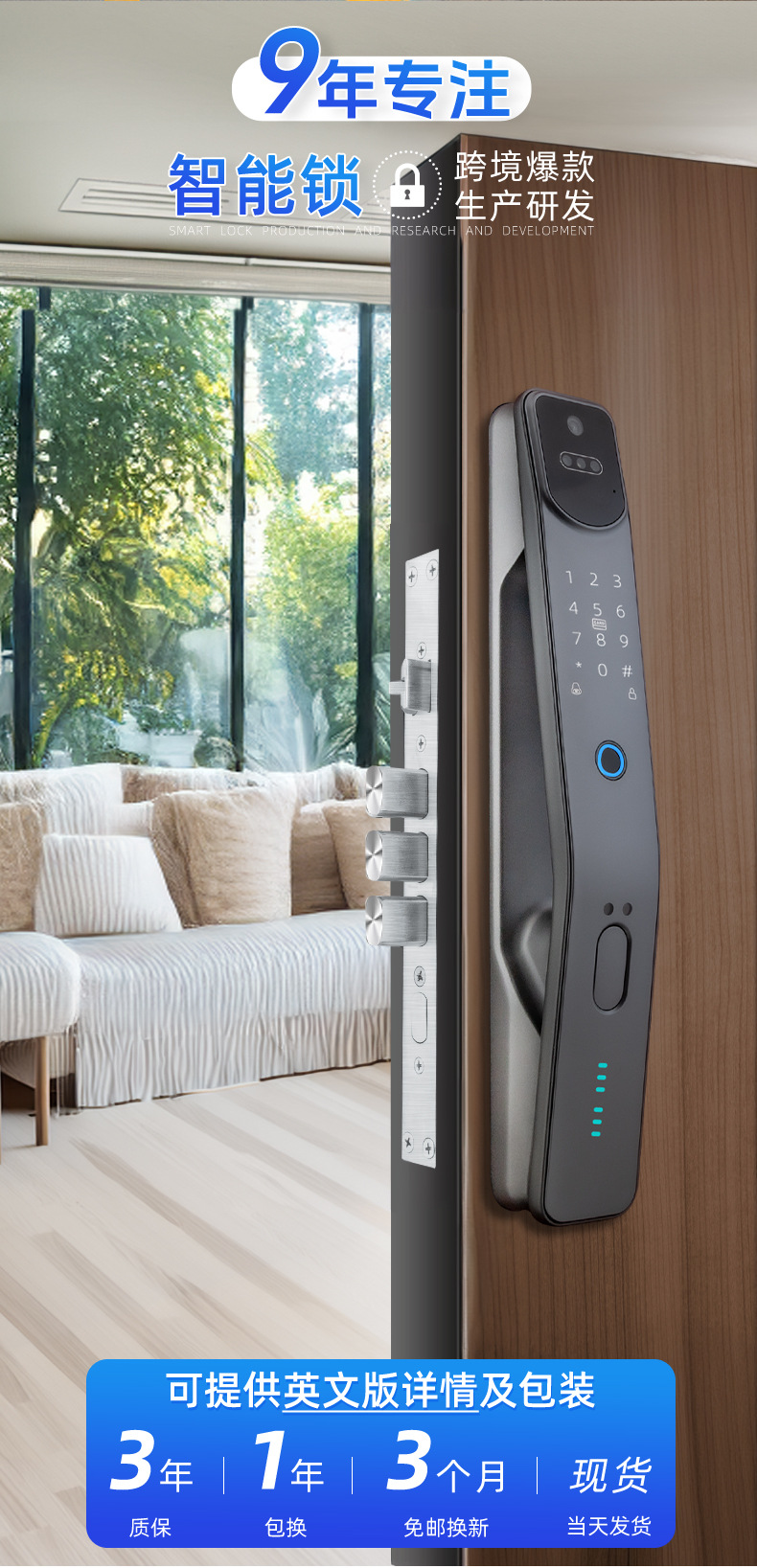 Kunci pintar grafiti lintas batas Arab dengan pengenalan wajah 3D, kunci pintar otomatis penuh dengan sidik jari dan kata sandi untuk pintu masuk