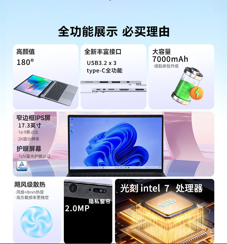 Laptop N150 17,3 inci untuk bisnis, kantor, e-sports kelas atas, gaming dan desain, dropshipping lintas batas