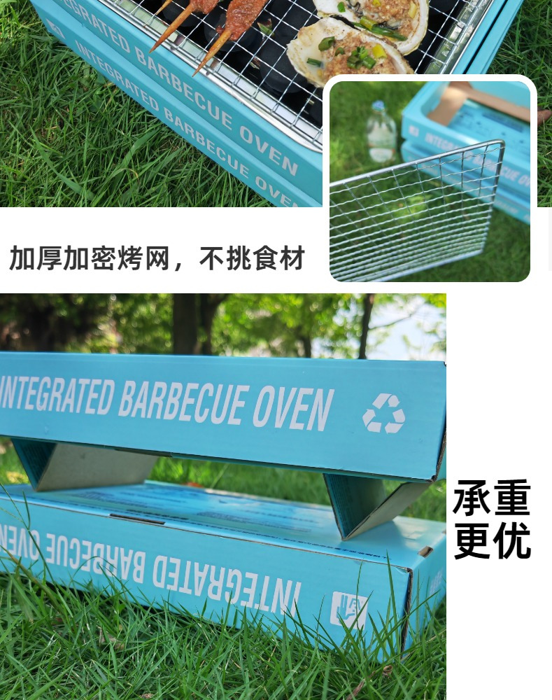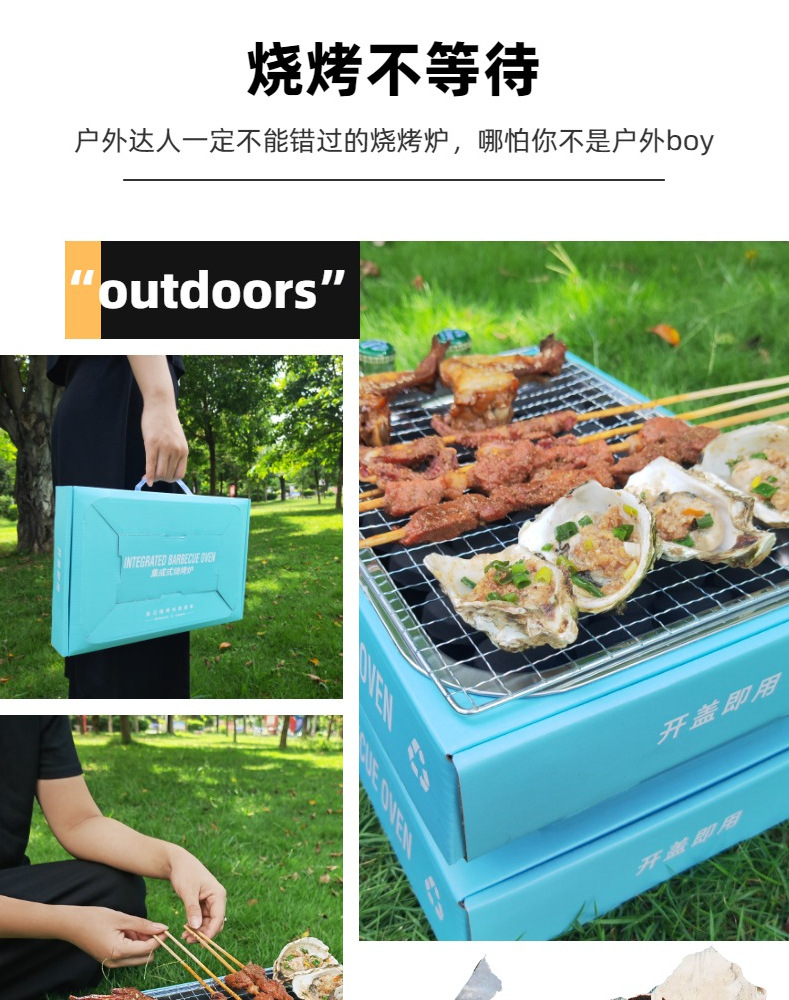 Oven barbekyu sekali pakai portabel luar ruangan kelompok piknik bangunan baja nirkarat kertas Kraft arang instan api panggangan barbekyu terintegrasi