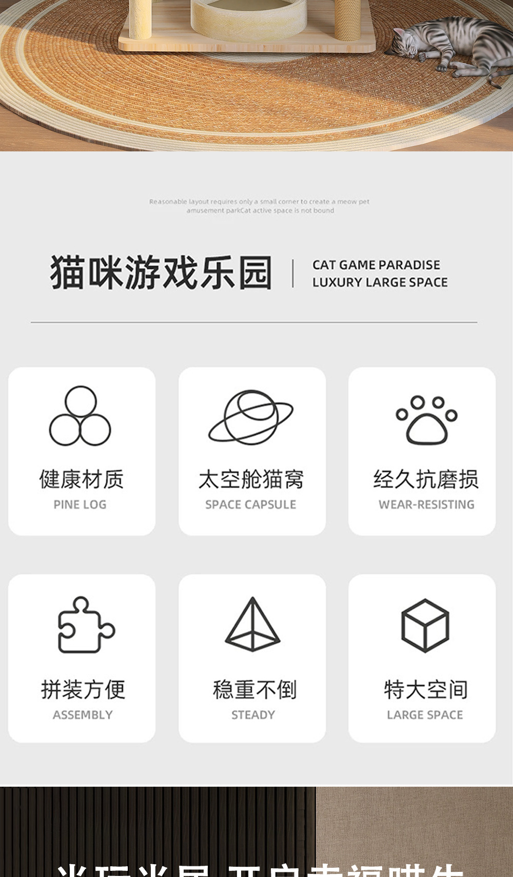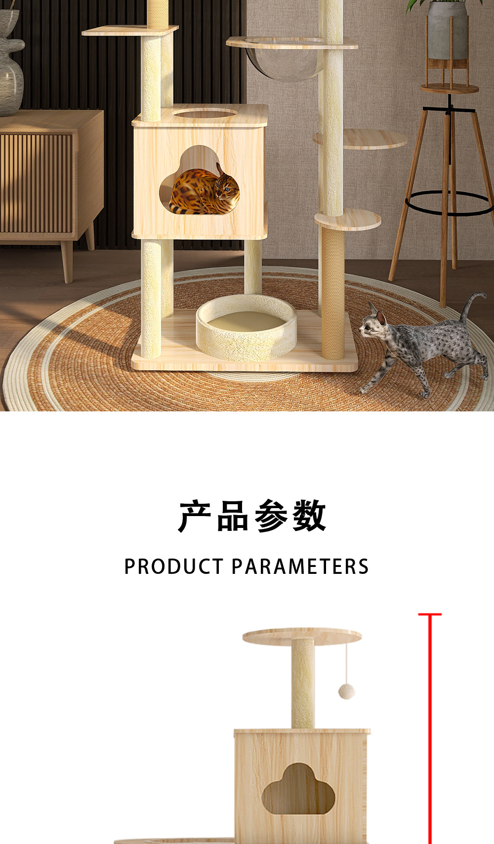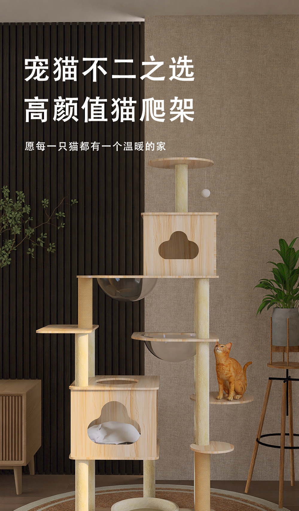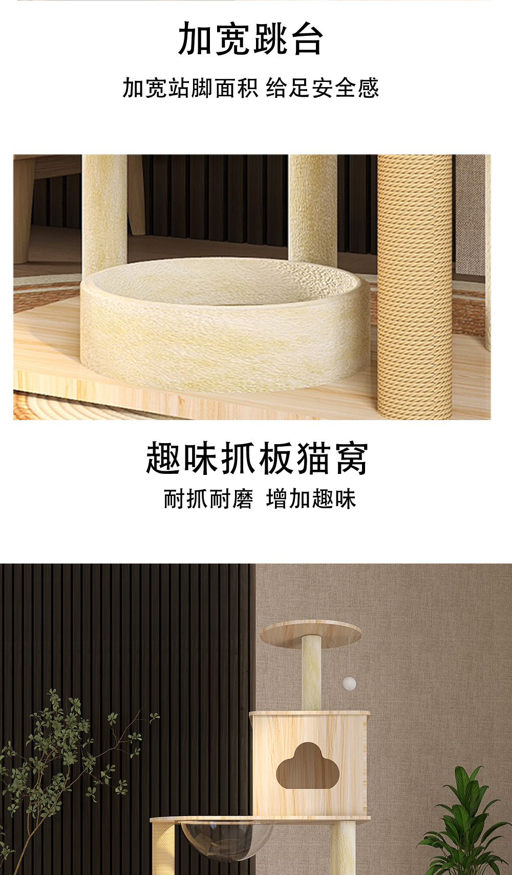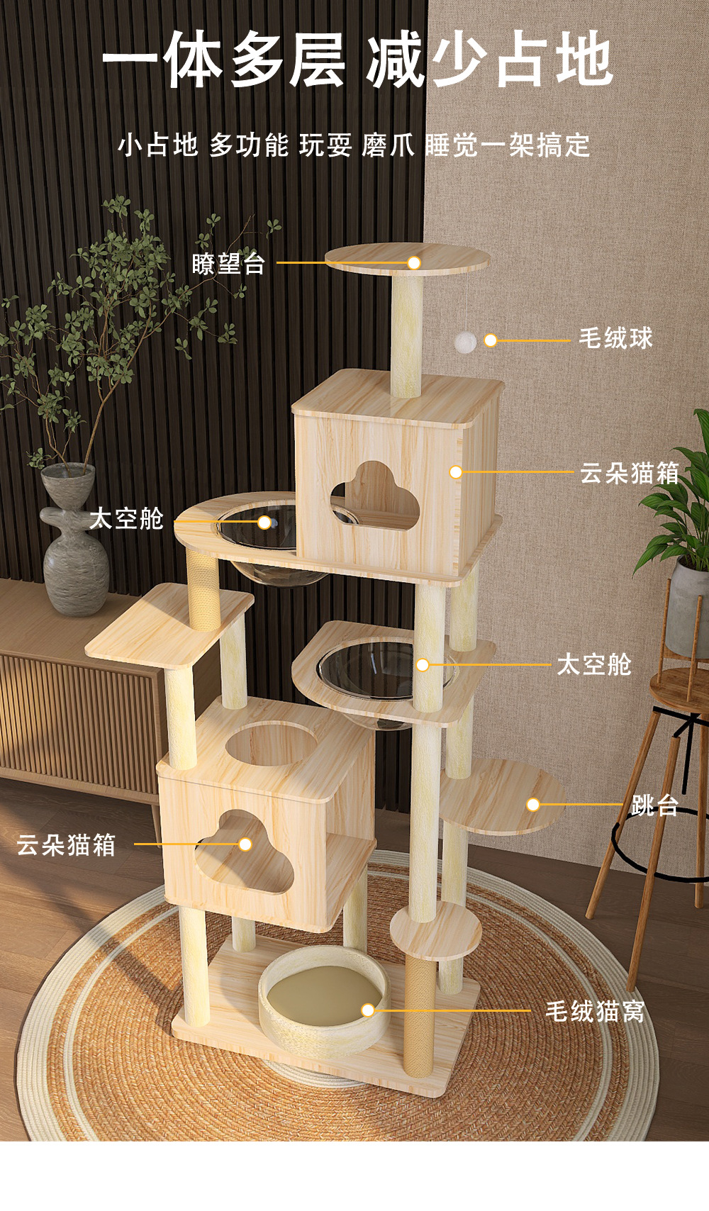 Skala besar universal tiga lapisan sederhana kucing dirakit pohon kucing berani dan stabil dapat mendengkur tali kucing memanjat rak produsen