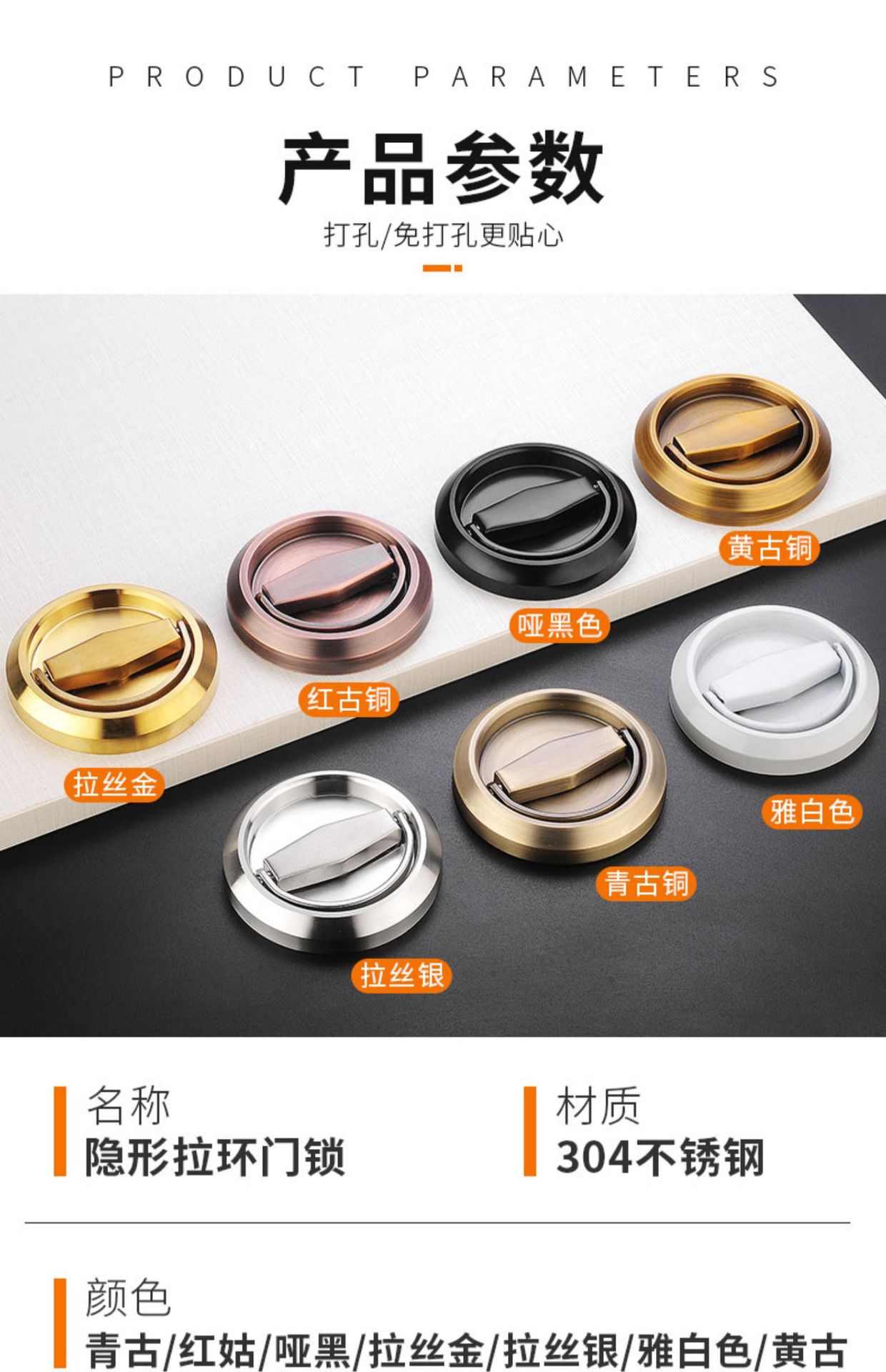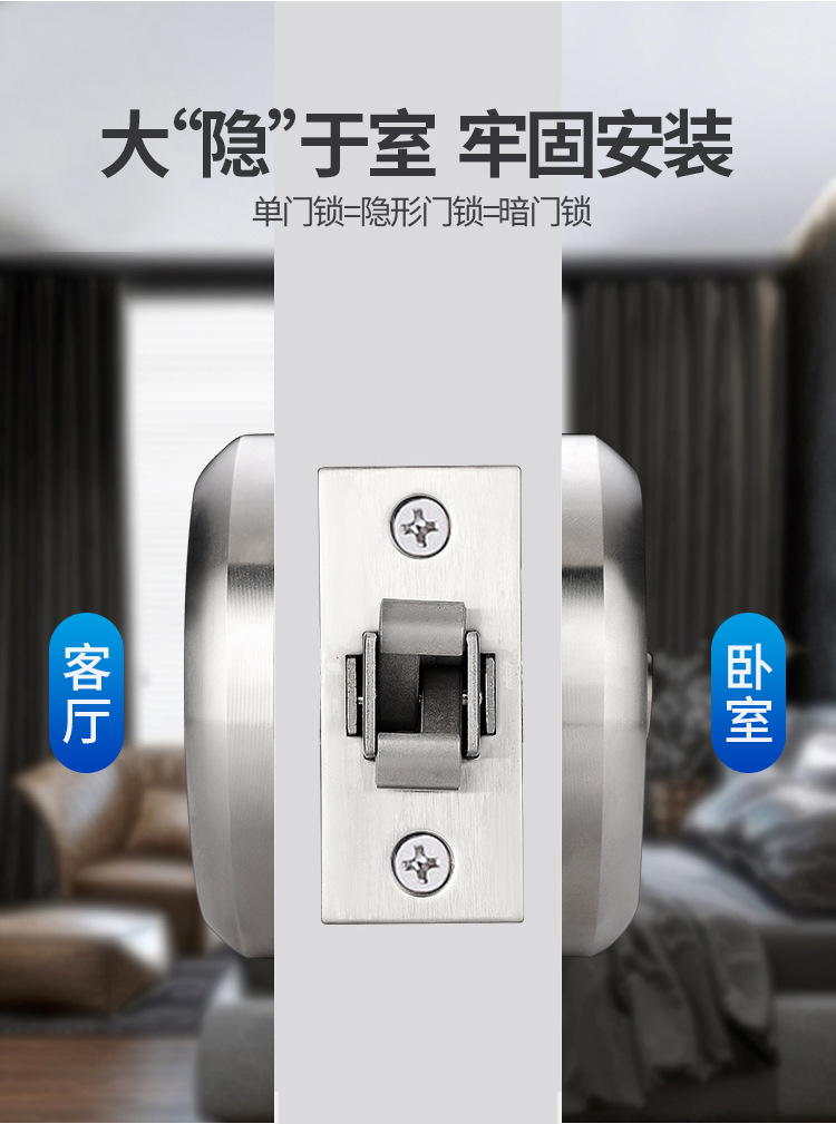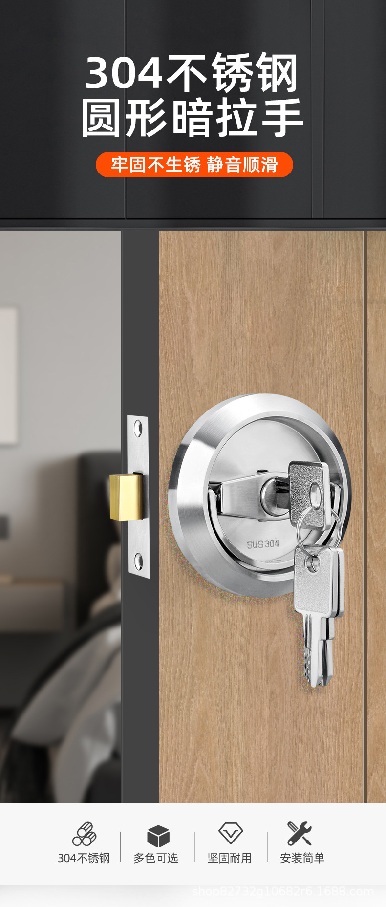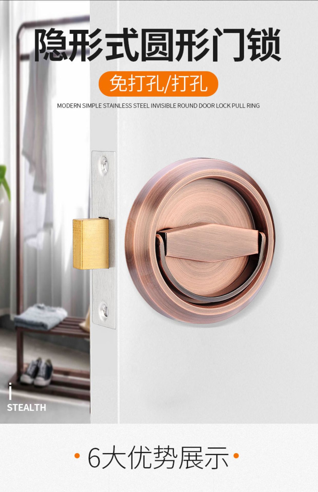Kunci pintu Stainless steel, kunci pintu tidak terlihat kamar tidur kamar mandi pintu geser pintu tarik tertanam kunci pintu melalui kunci keamanan kunci tersembunyi