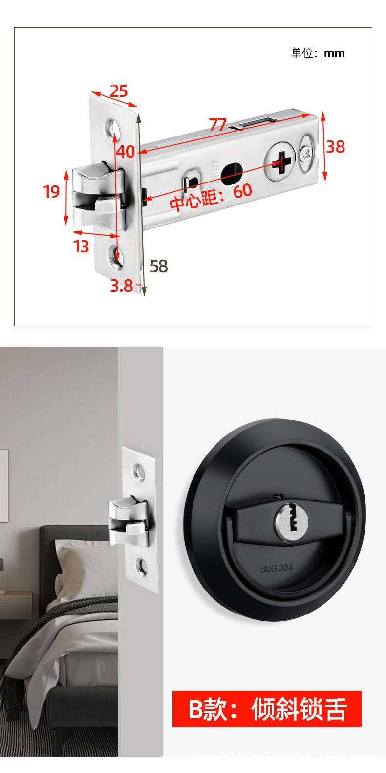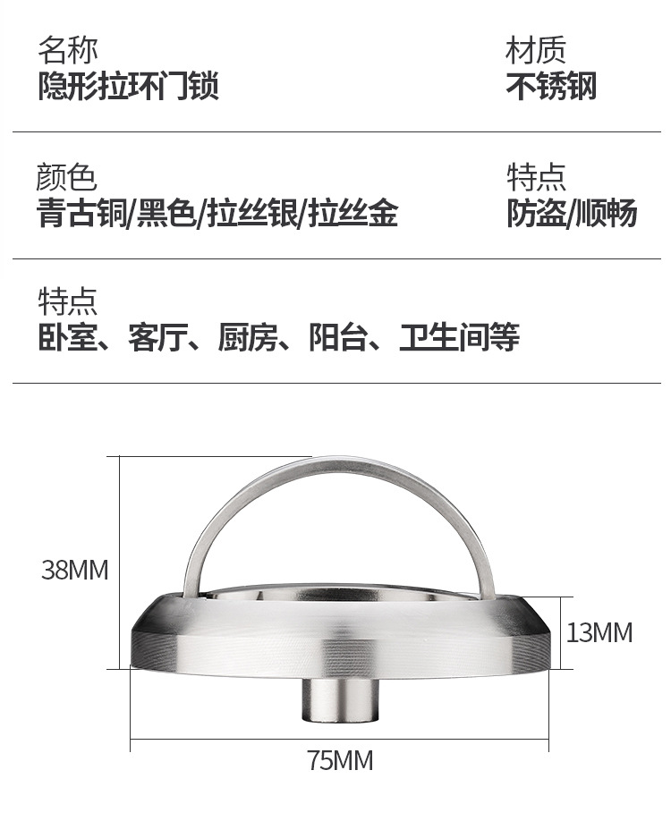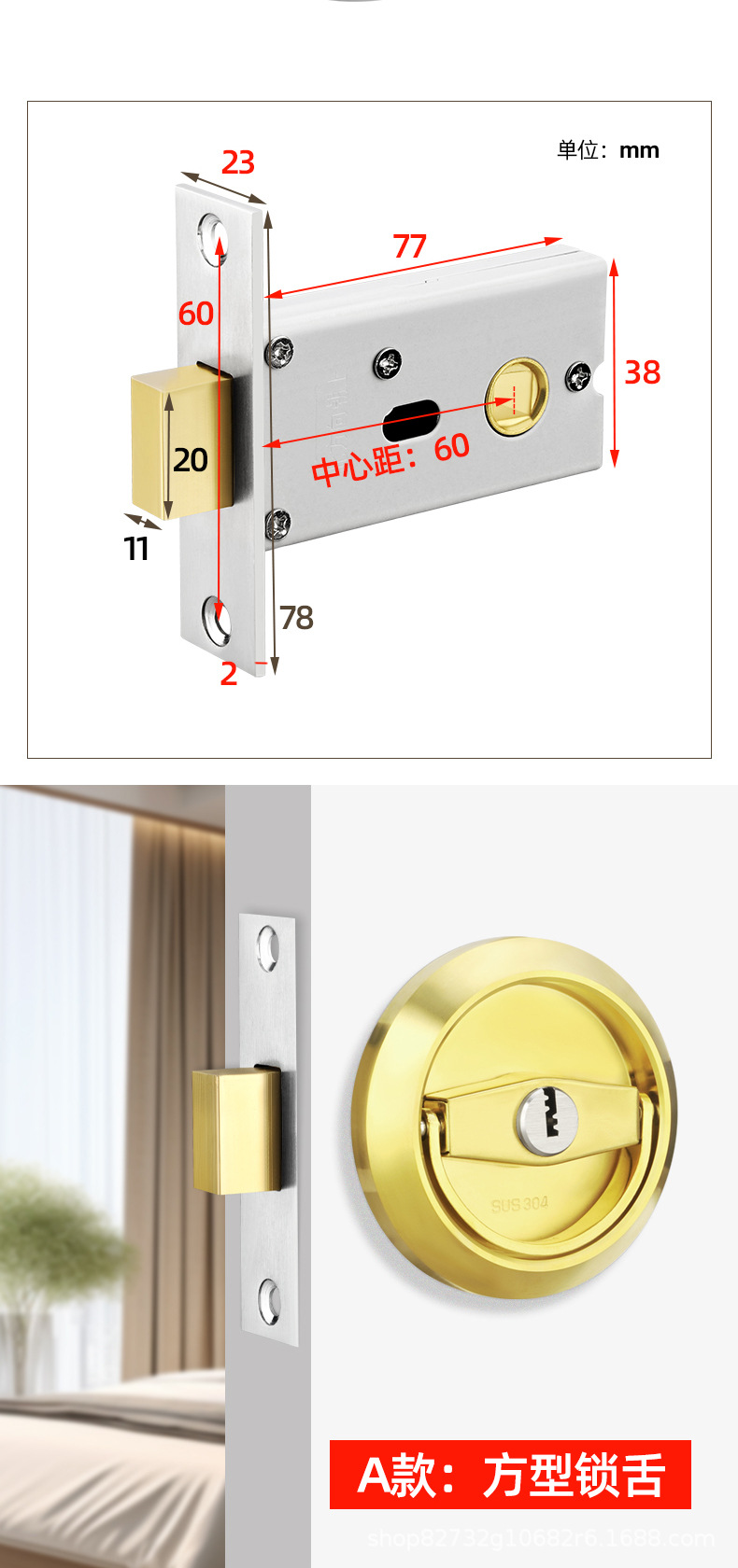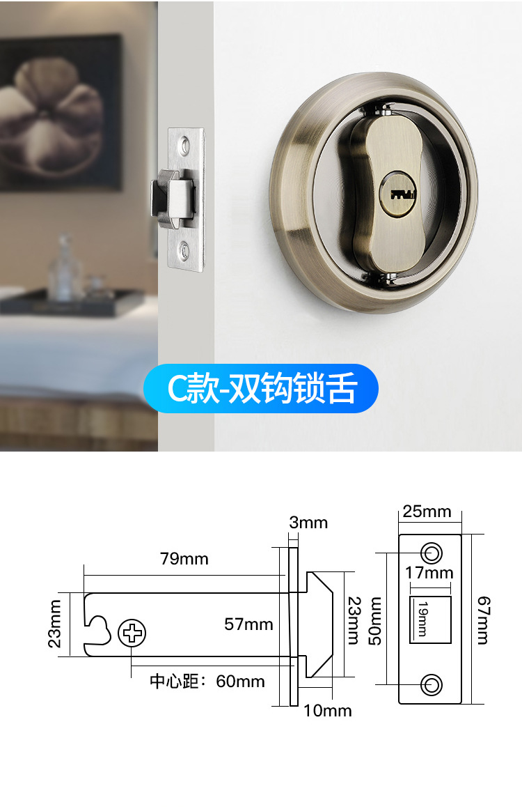 Kunci pintu Stainless steel, kunci pintu tidak terlihat kamar tidur kamar mandi pintu geser pintu tarik tertanam kunci pintu melalui kunci keamanan kunci tersembunyi