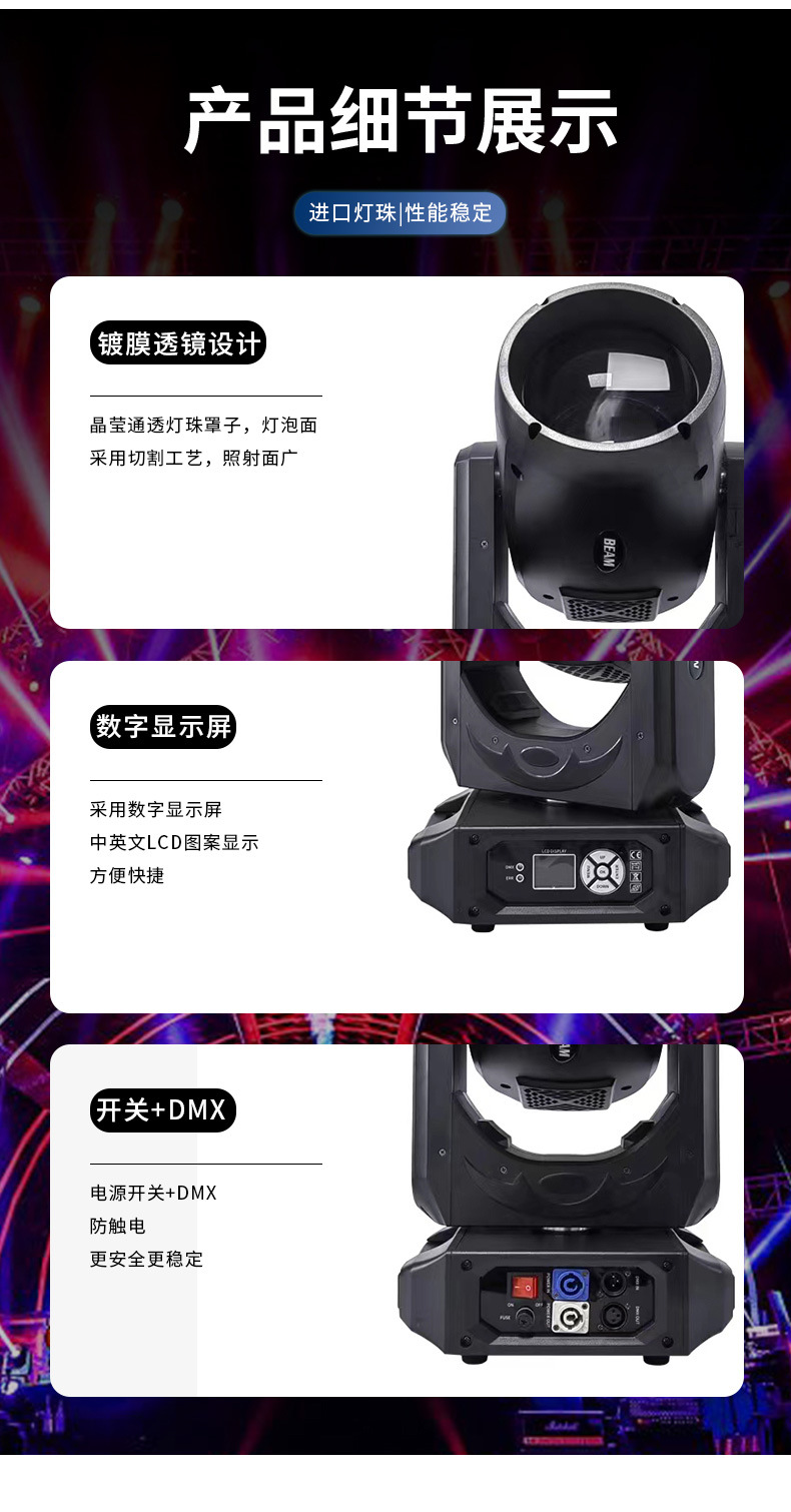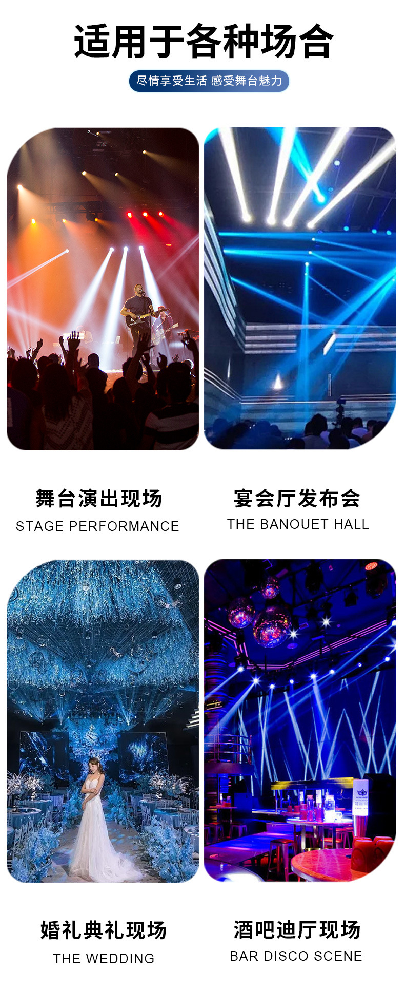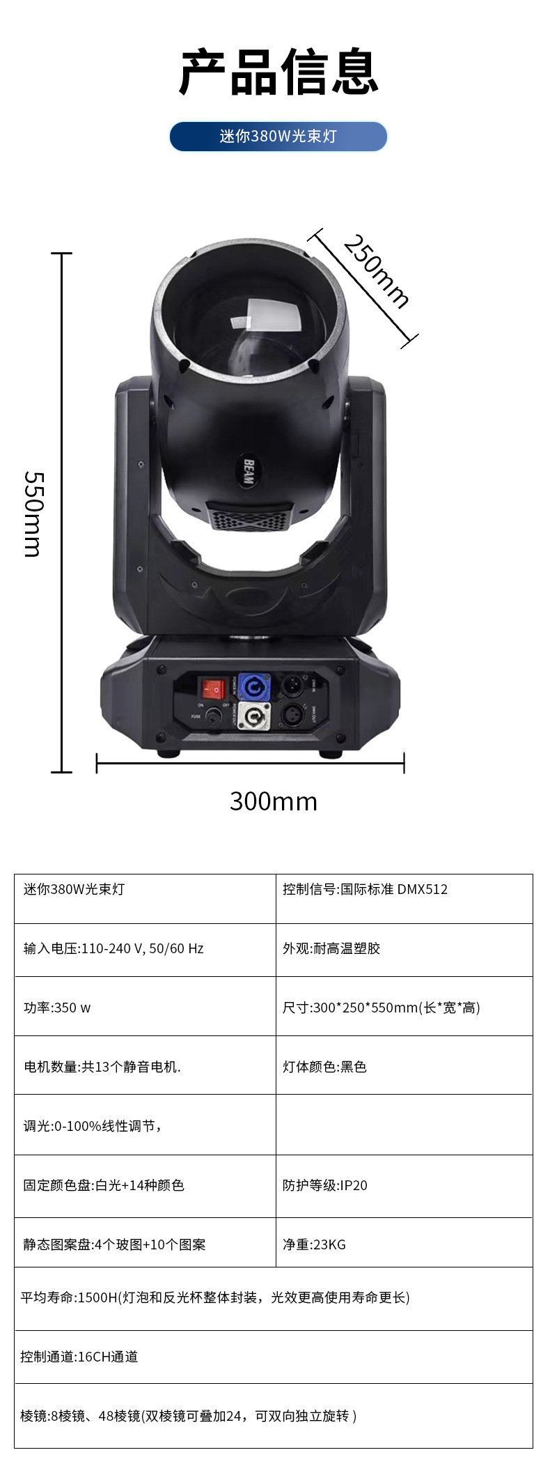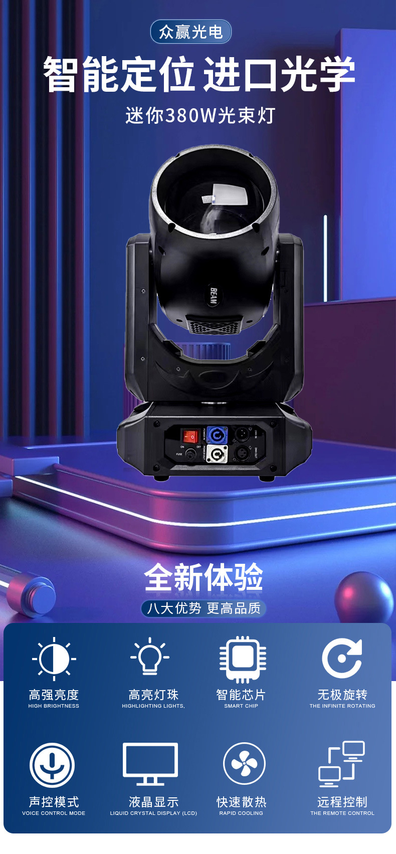 Lampu sorot mini 380W, pencahayaan berputar untuk ruang siaran langsung panggung, peralatan pencahayaan untuk bar, pernikahan, pesta, dan pertunjukan