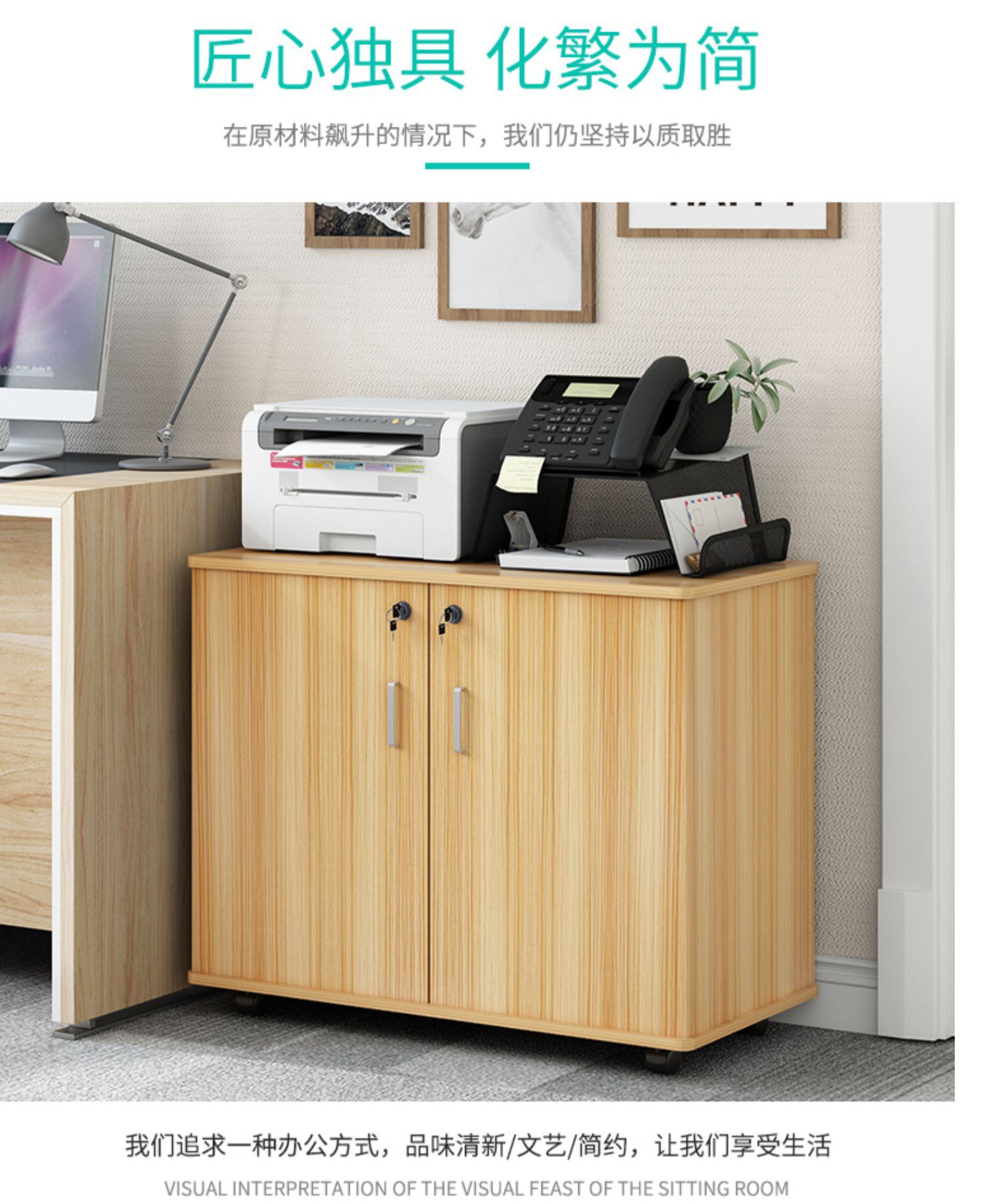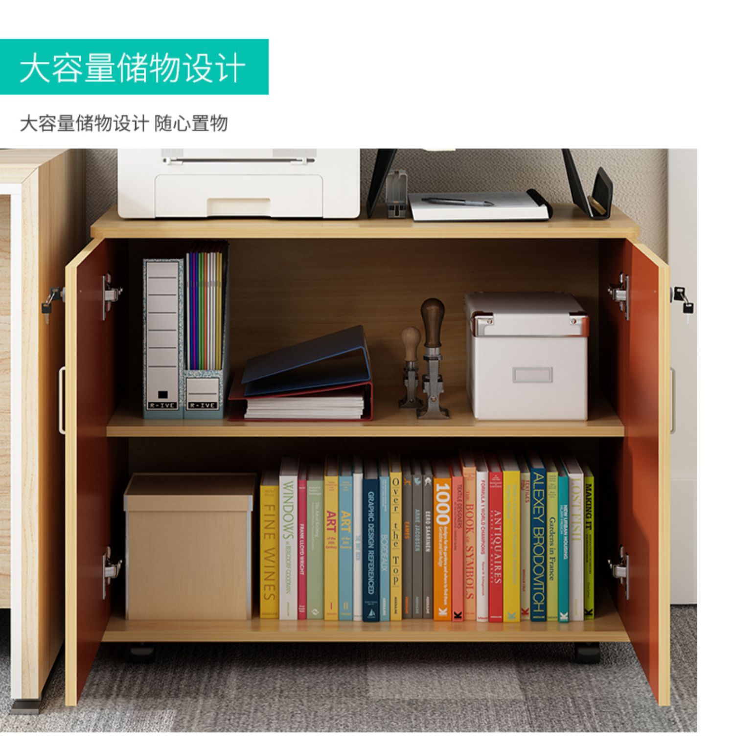 Kabinet berkas material meja kabinet lantai kabinet rendah dengan kunci pintu ganda printer lemari penyimpanan lemari kantor loker