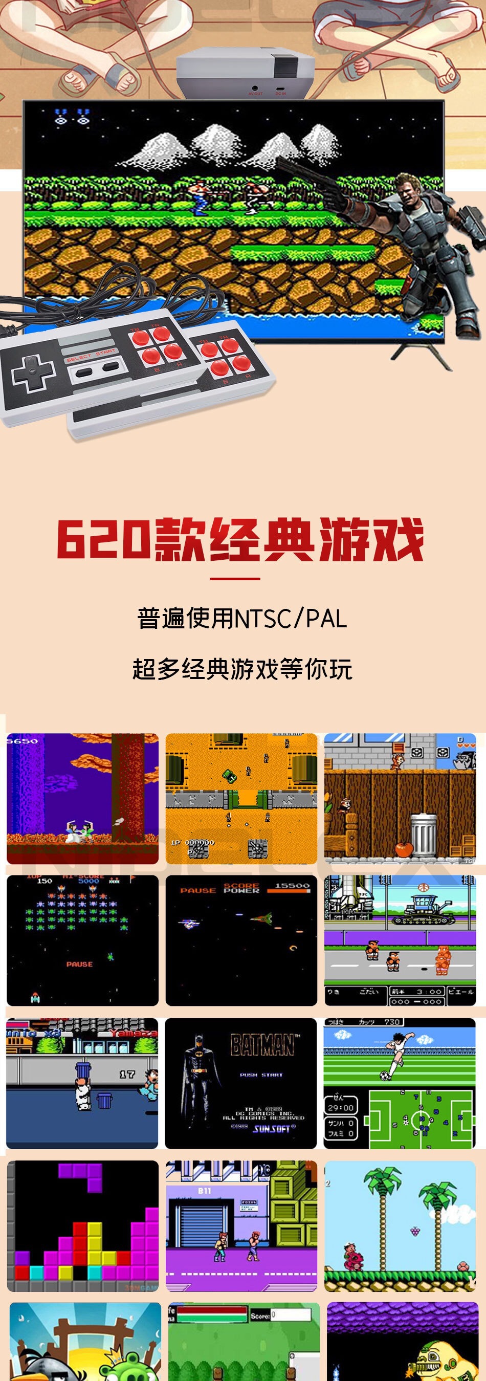 TEMU TK SHEIN hot NES620 konsol permainan TV rumah bermain ganda nostalgia retro merah dan putih mesin