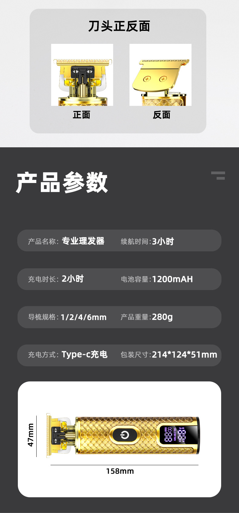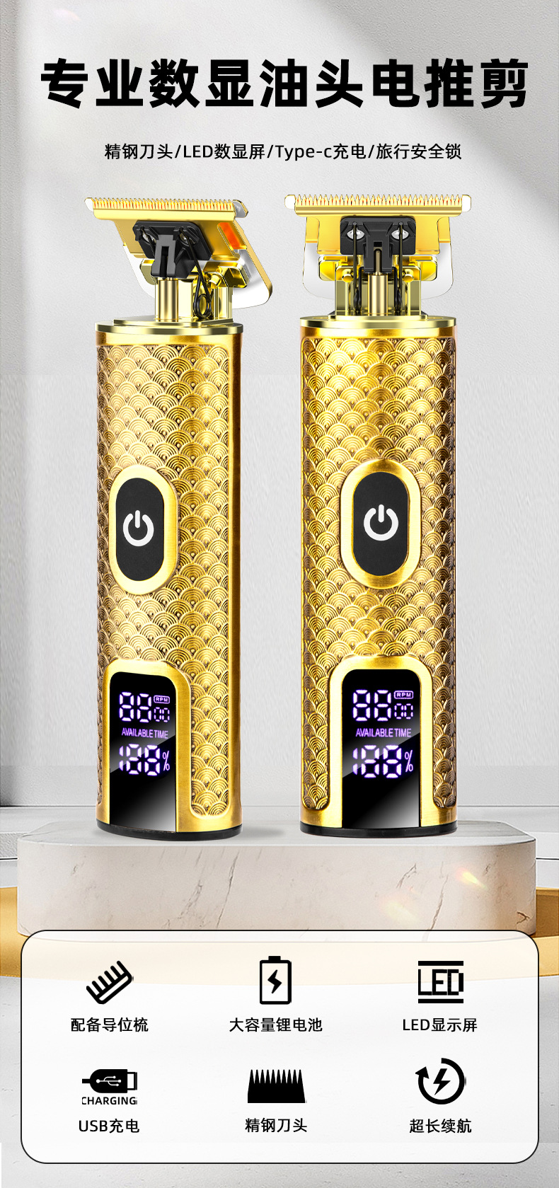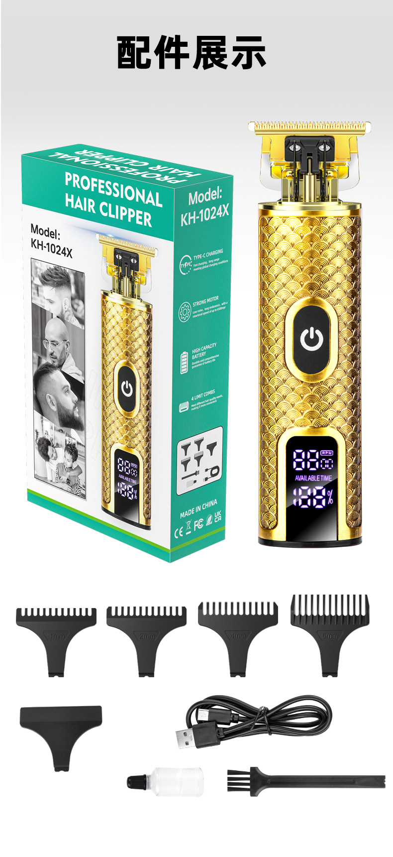 Alat cukur rambut elektrik lintas batas, pemangkas rambut paduan, alat cukur rambut elektrik salon, alat cukur rambut digital dengan layar, alat cukur rambut kepala datar