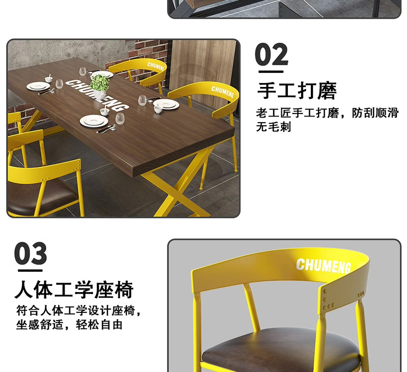 Gaya industri berwarna-warni keren Bar klub meja dan kursi kombinasi toko teh susu restoran barbekyu komersial meja makan toko makanan ringan malam