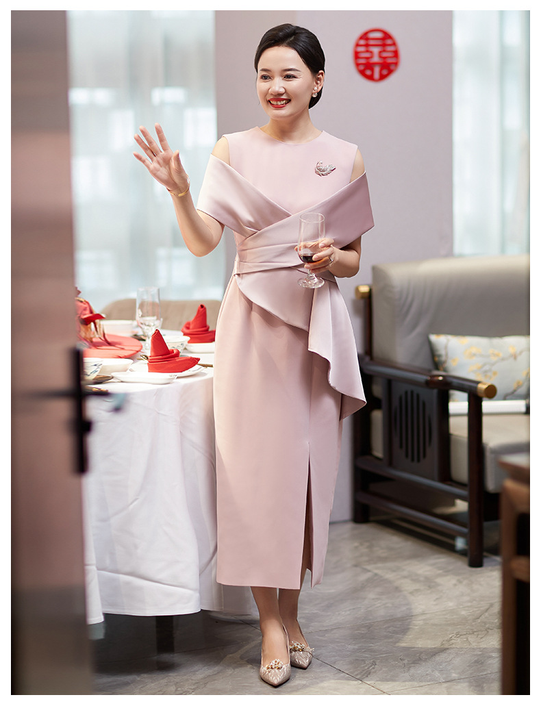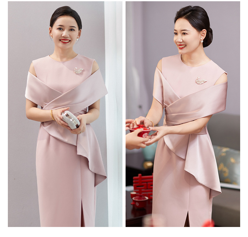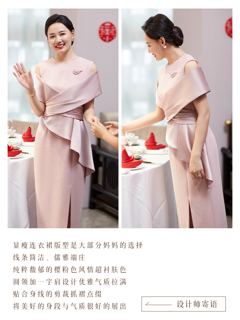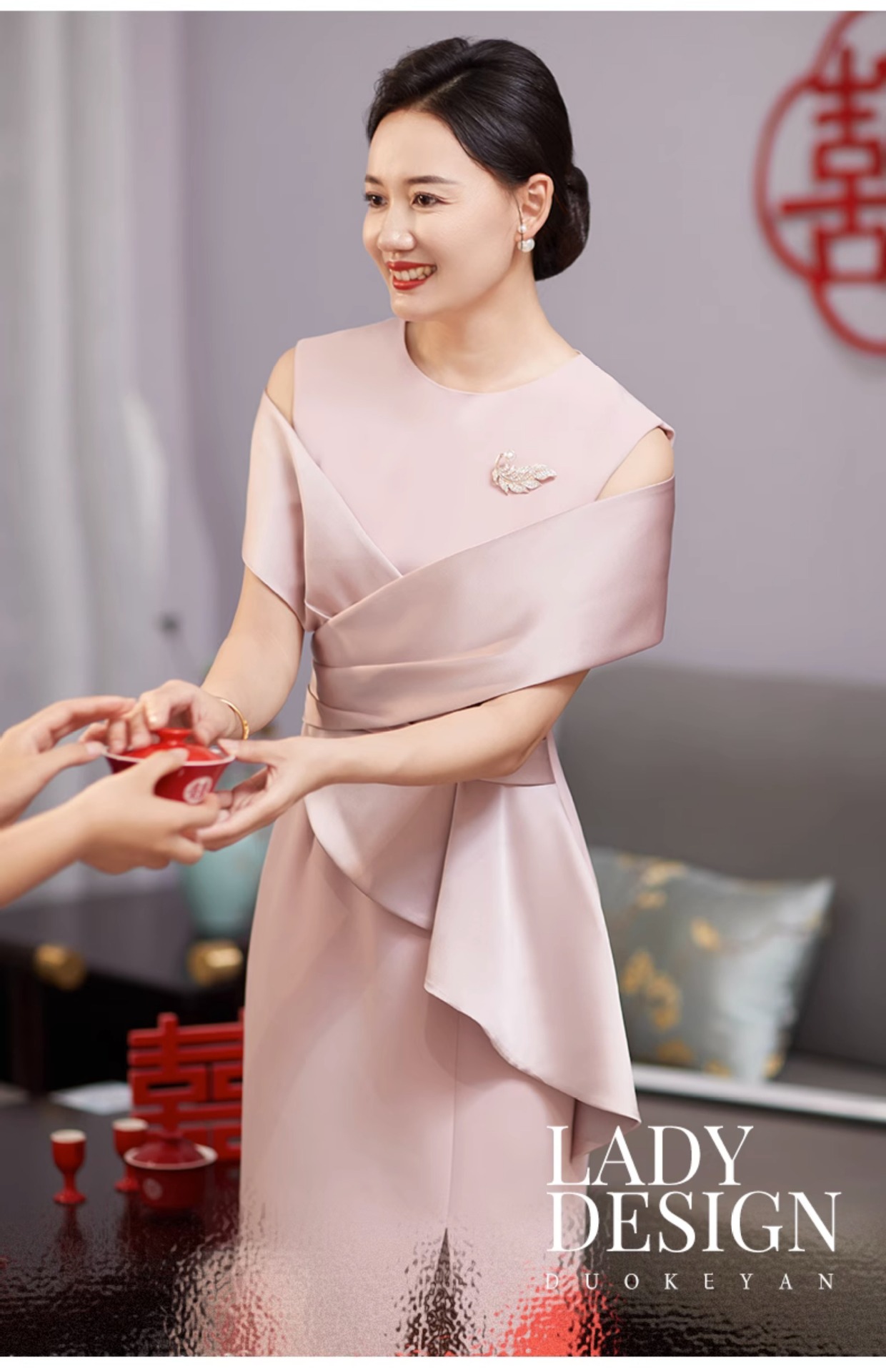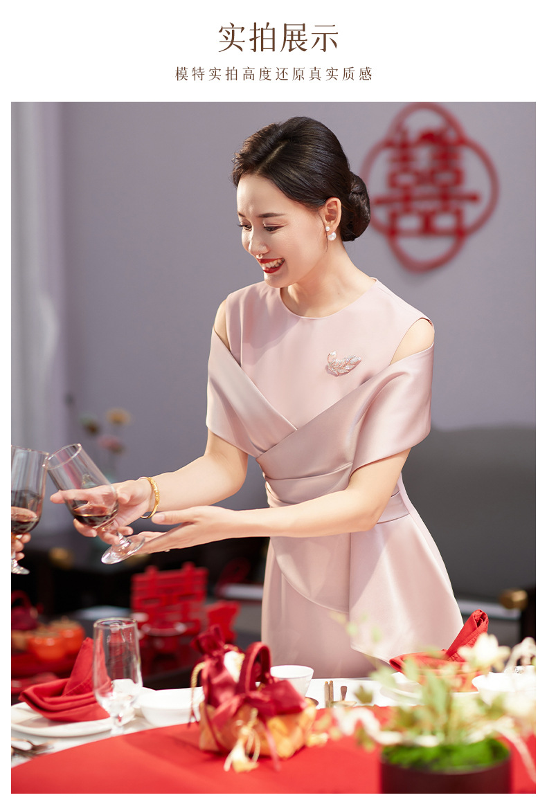 Gaun pengantin ibu mertua gaya Barat 2026, gaya Korea baru, elegan, warna pink, untuk pesta pernikahan, gaun cheongsam.