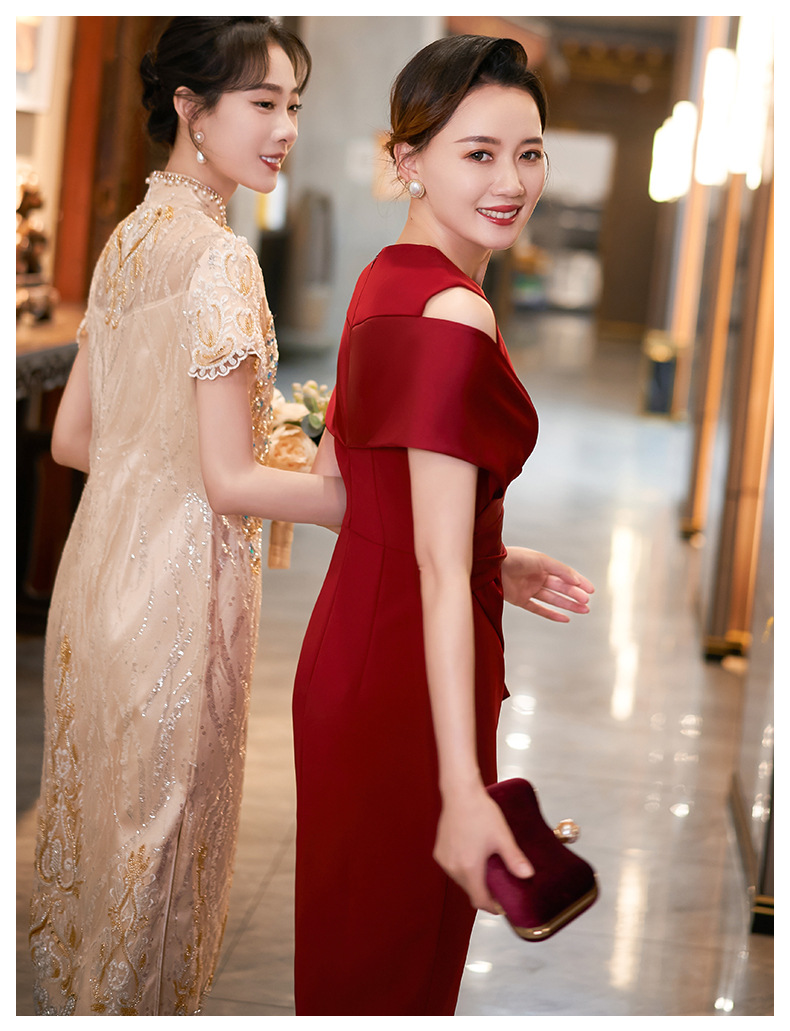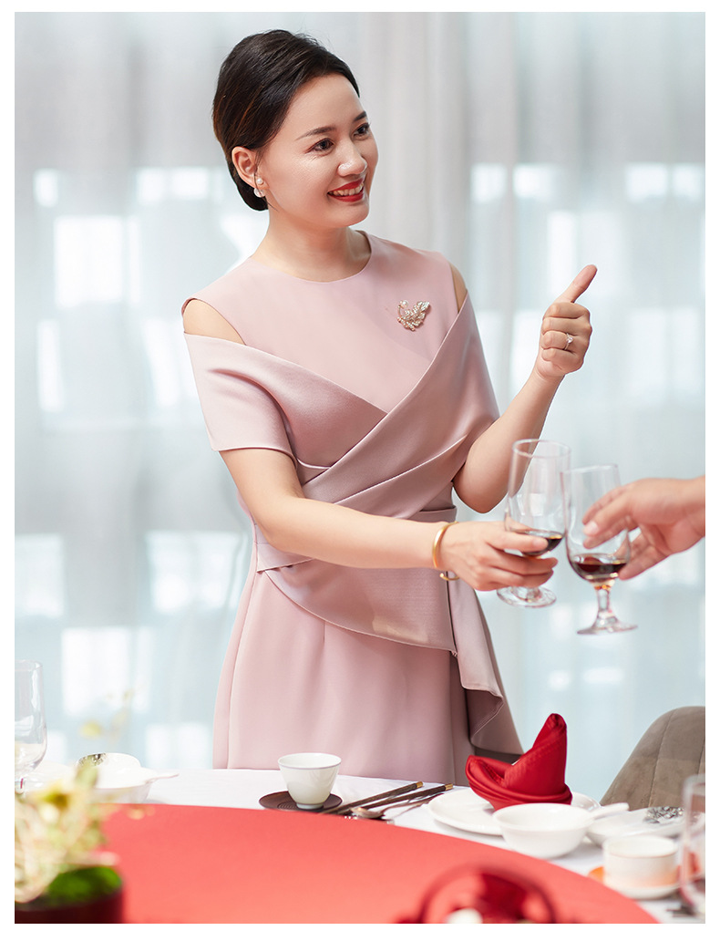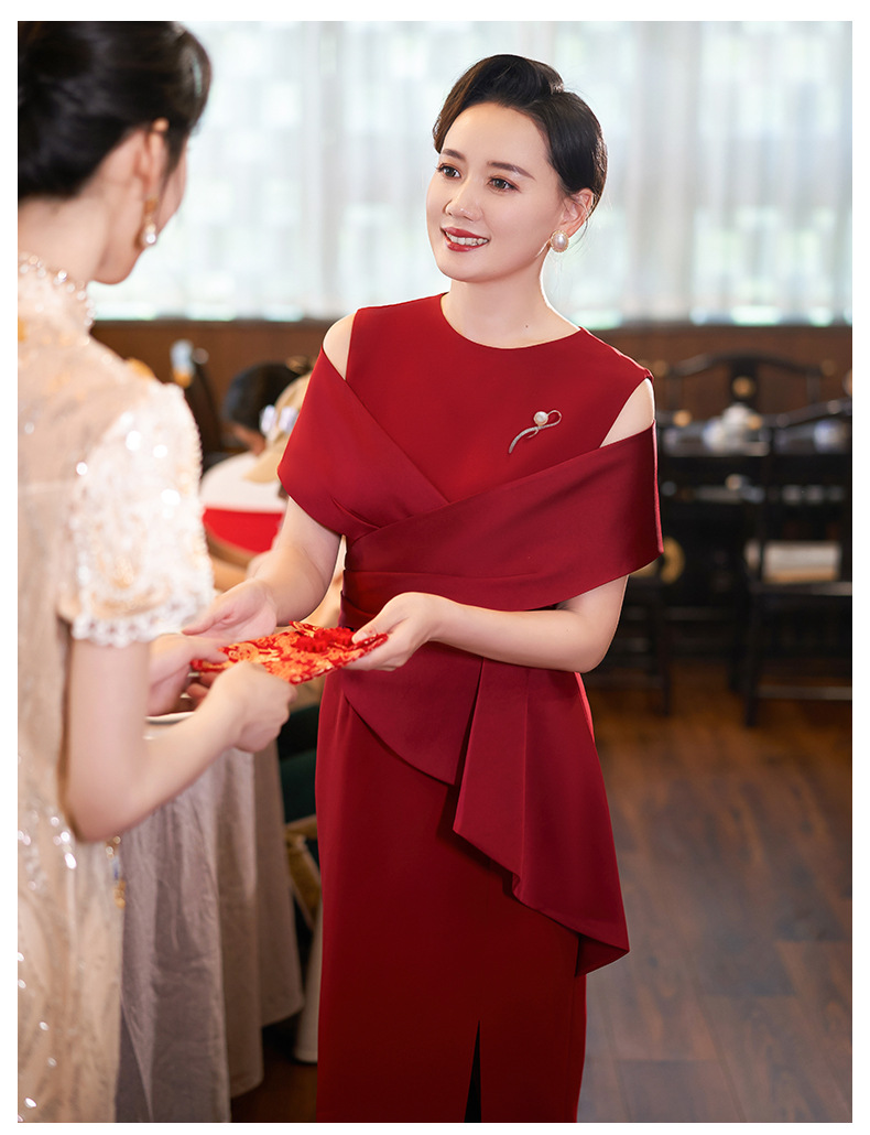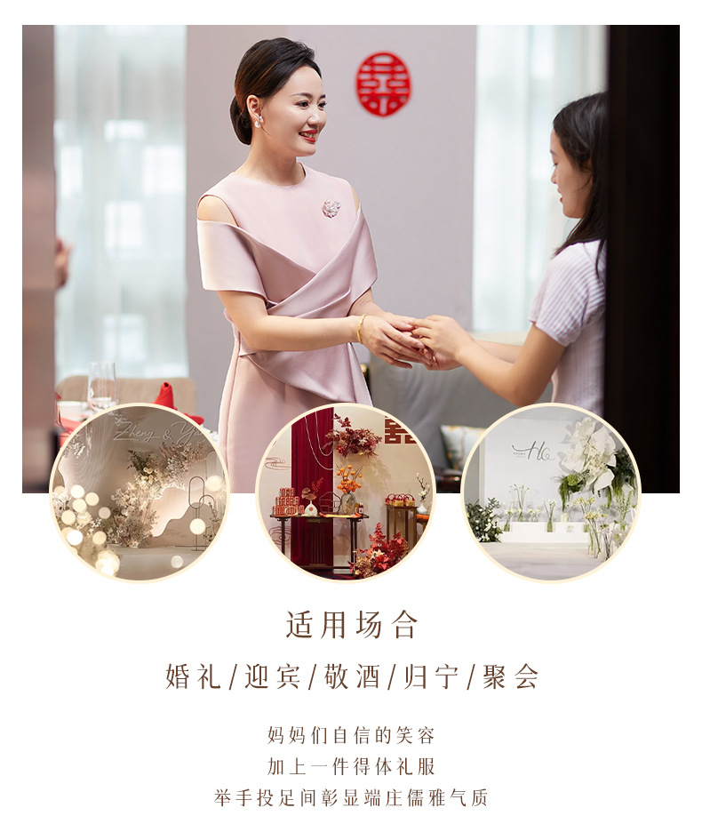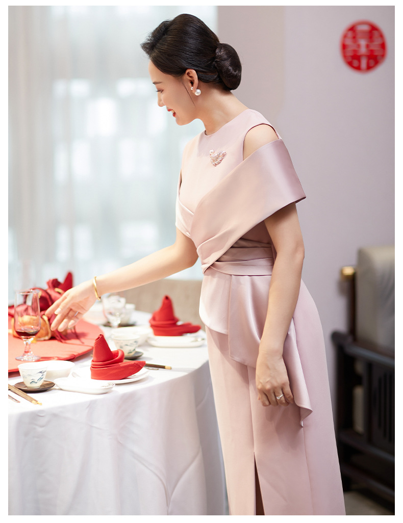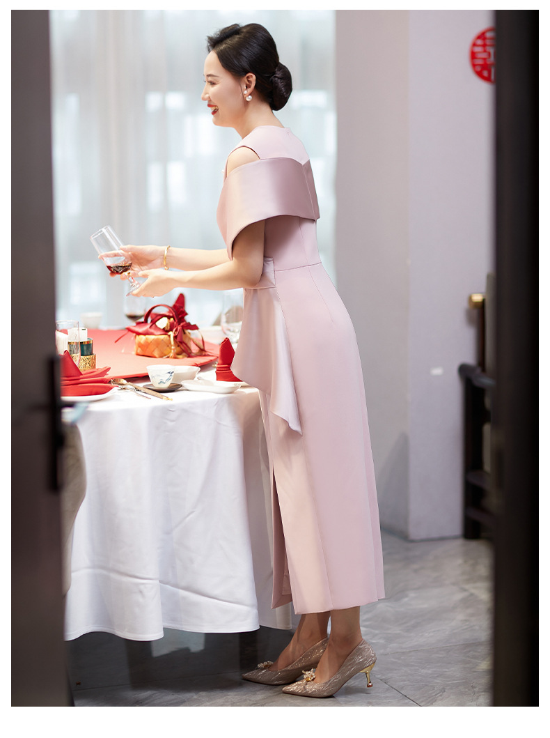Gaun pengantin ibu mertua gaya Barat 2026, gaya Korea baru, elegan, warna pink, untuk pesta pernikahan, gaun cheongsam.
