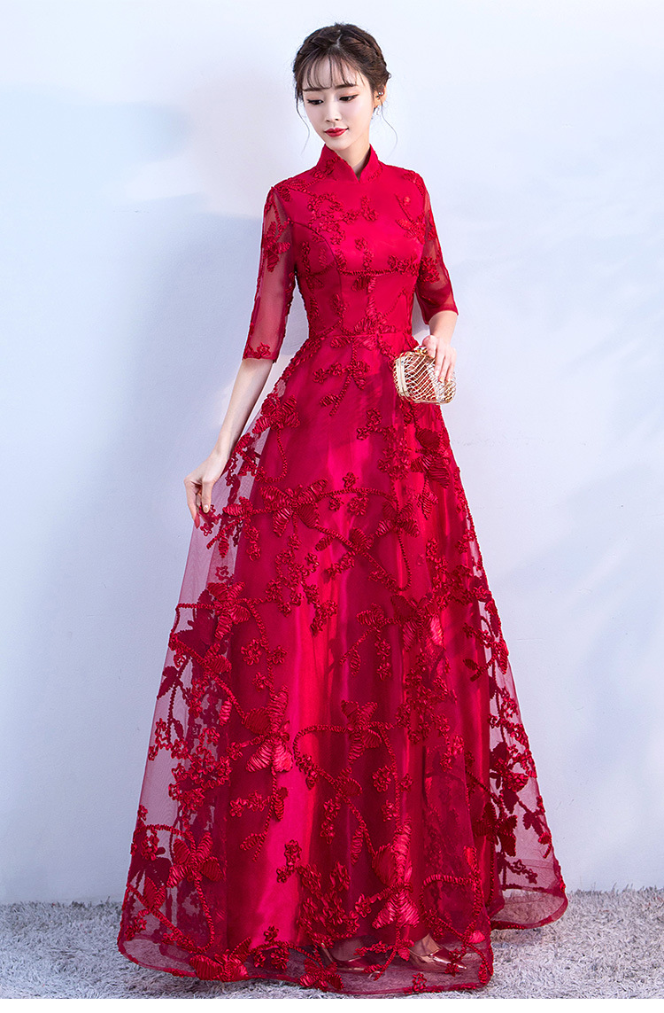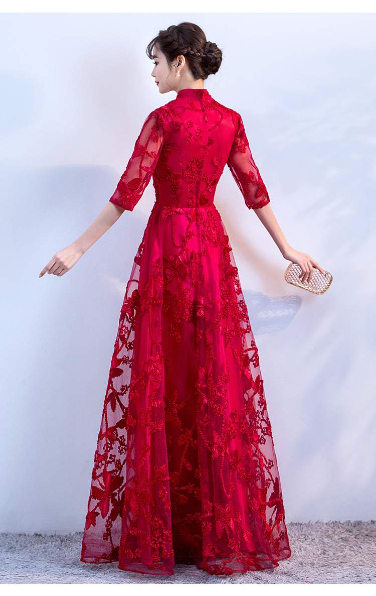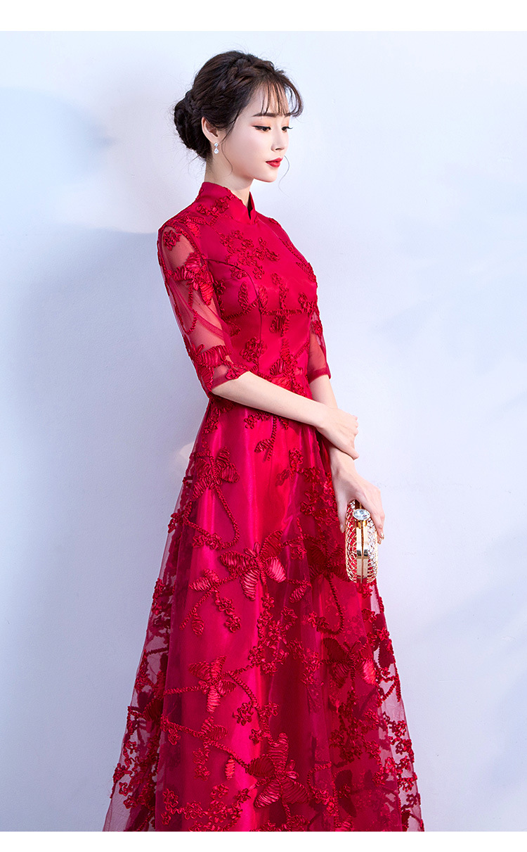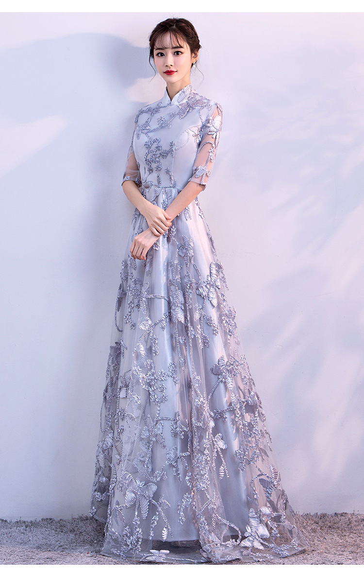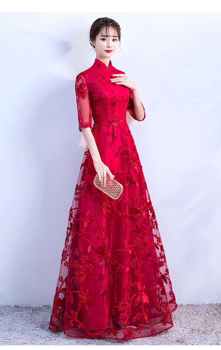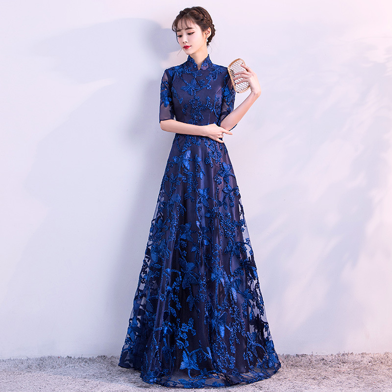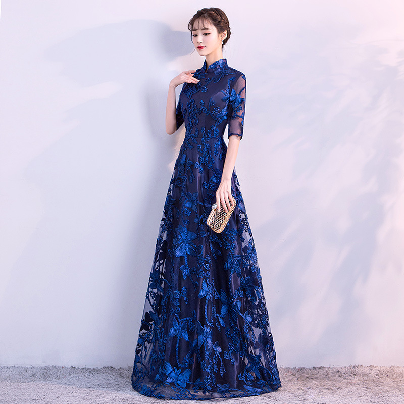 Chorus gaun pertunjukan cheongsam Cina gaun malam wanita host pakaian dewasa gaun panjang wanita