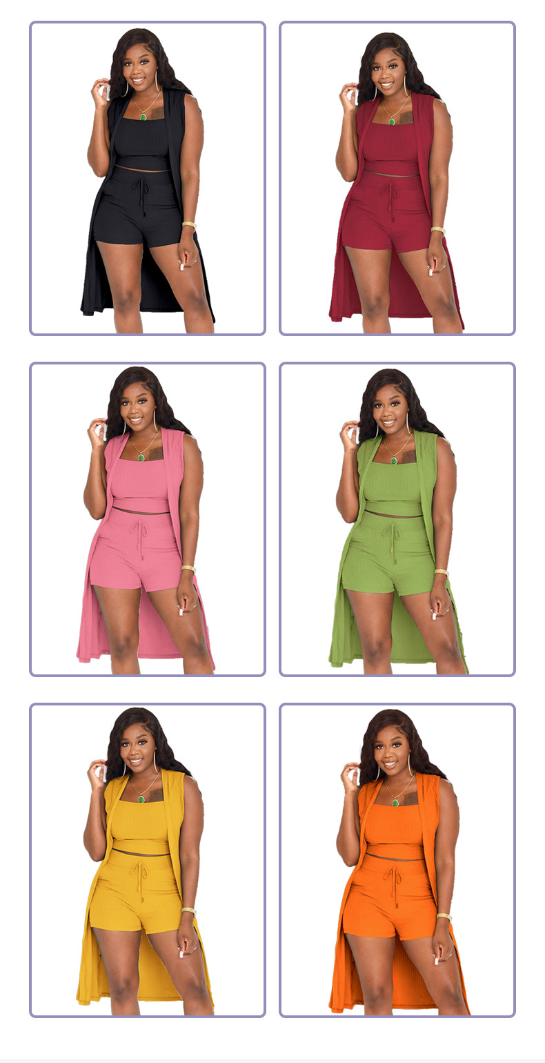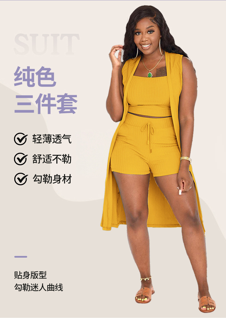 Pakaian wanita Eropa dan Amerika baru pakaian wanita Perdagangan Luar Negeri pakaian wanita diskon besar Amazon AliExpress pit warna solid setelan tiga potong 31210
