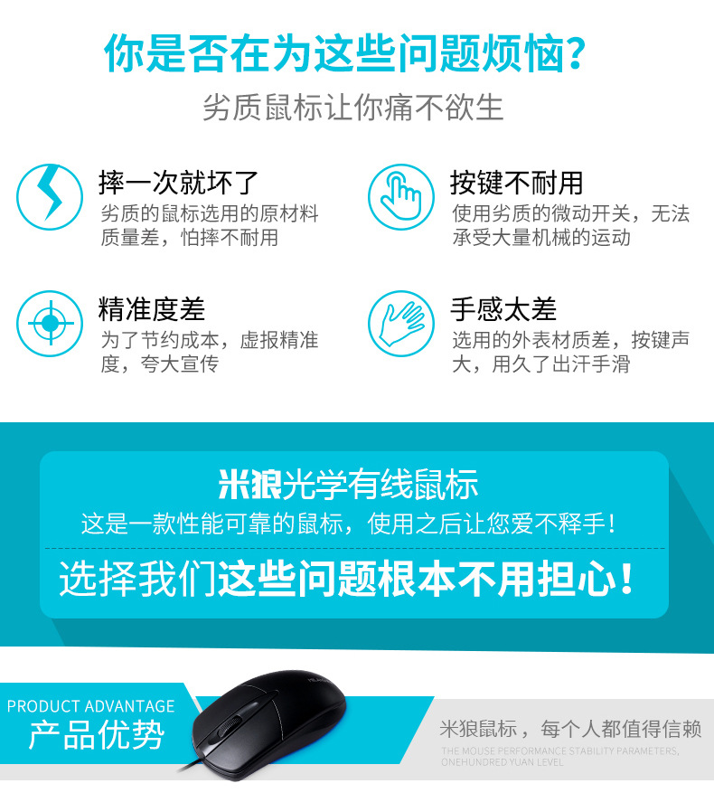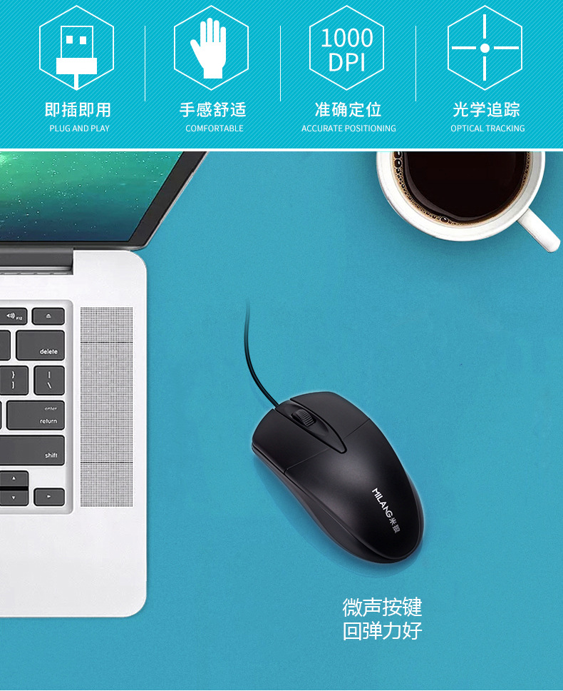 Mi Lang M1 mouse gaming, aksesori komputer mouse rumah kantor bisnis berkabel USB fotoelektrik
