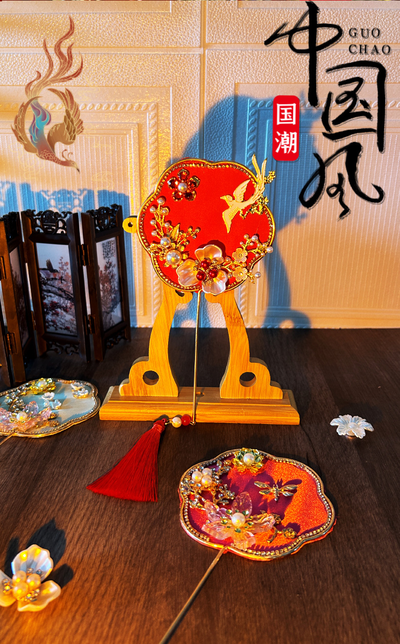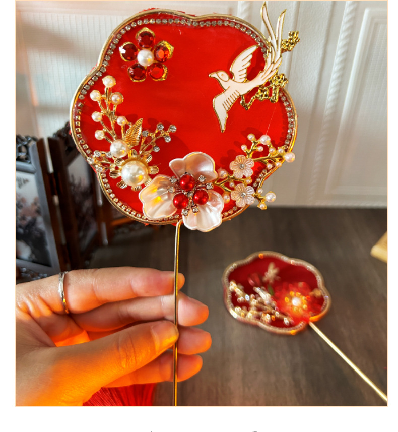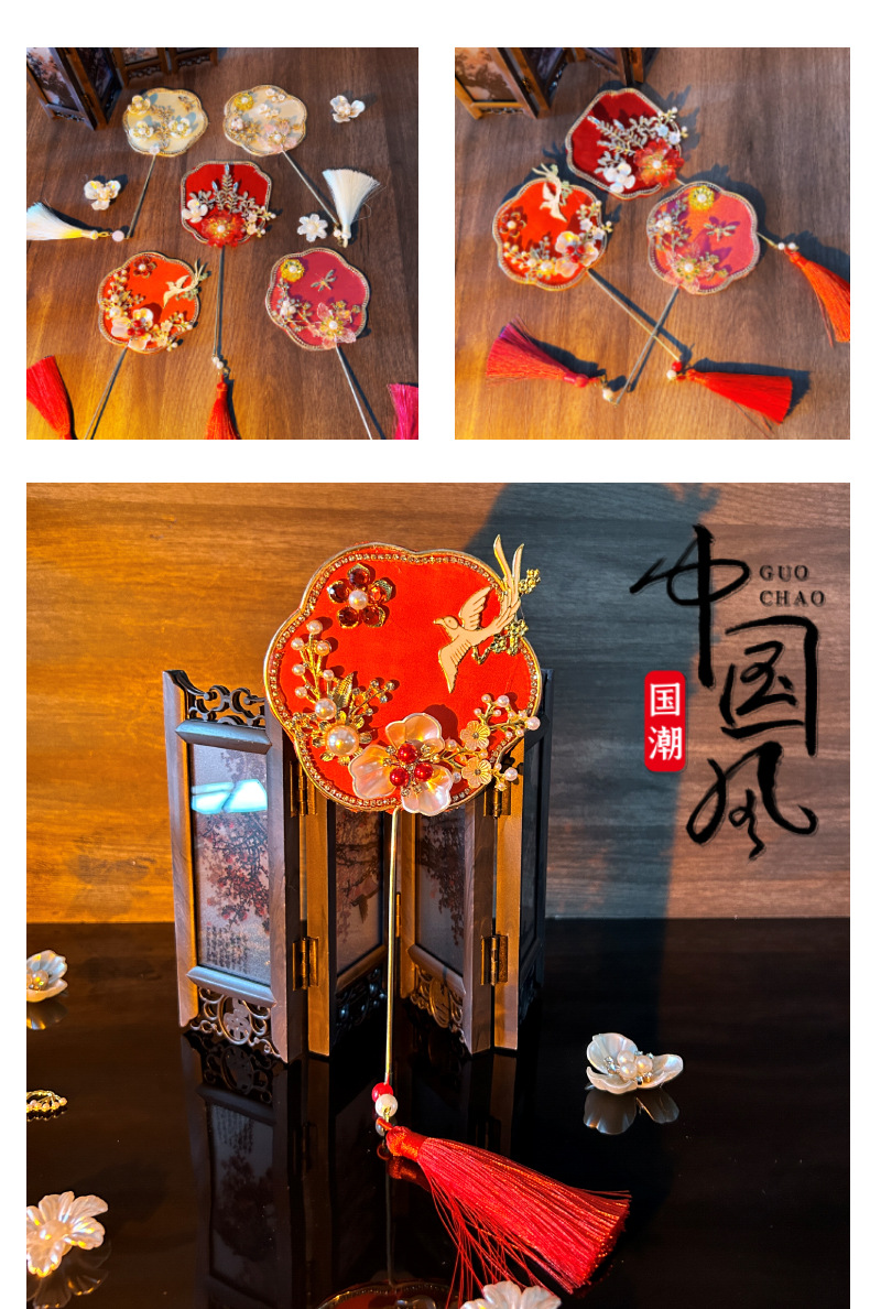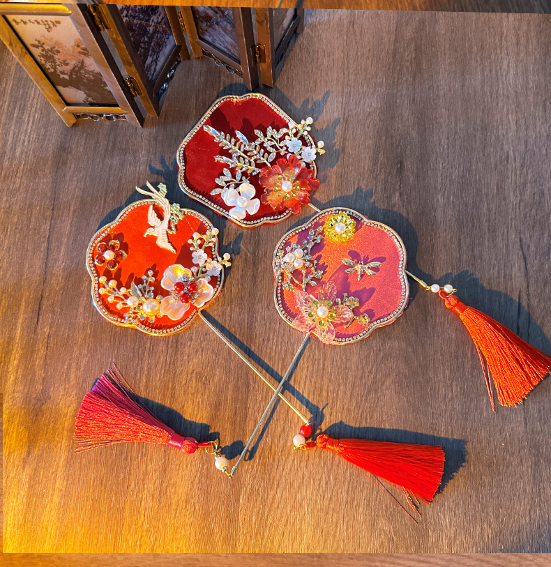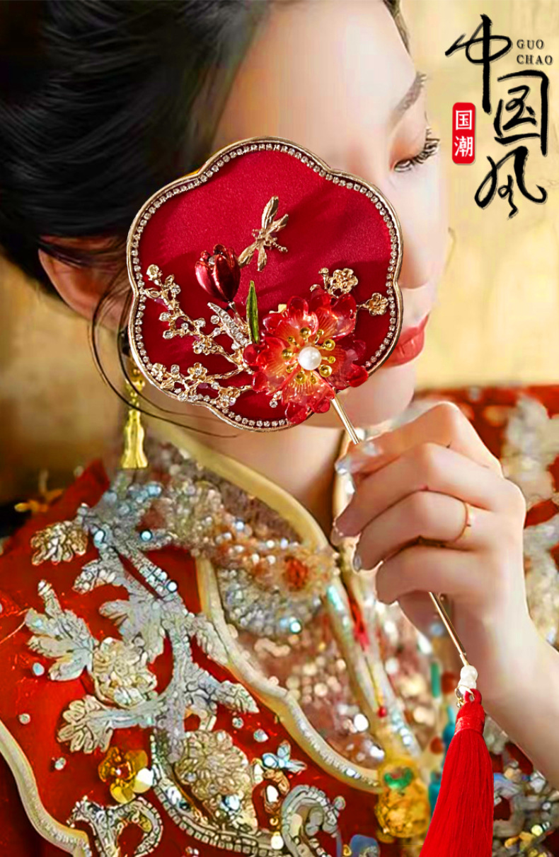 Alat peraga foto model cheongsam kipas kelompok kecil gaya kuno pernikahan gaya Tiongkok aksesori klasik Hanfu kipas Xiuhe genggam