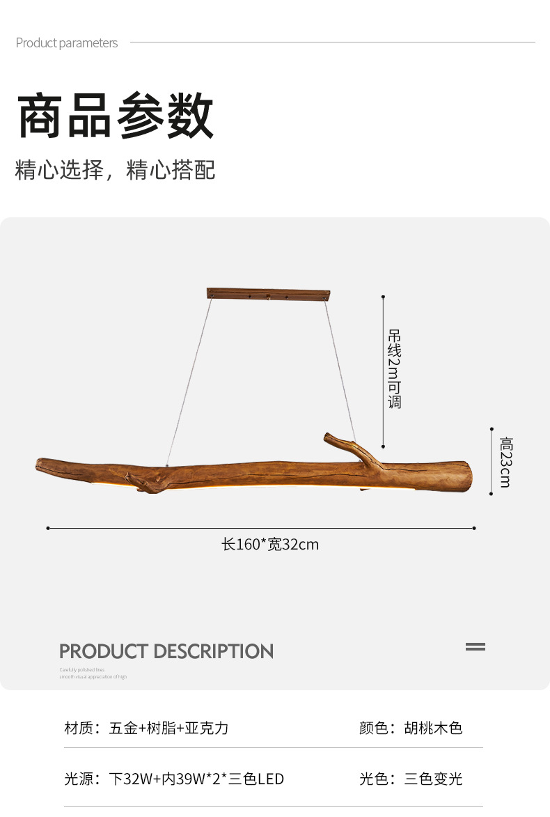 Lampu Ruang Makan Gaya Tiongkok Retro Lampu Gantung Ruang Teh Zen Lampu Gantung Meja Teh Panjang Kayu Cabang Unik