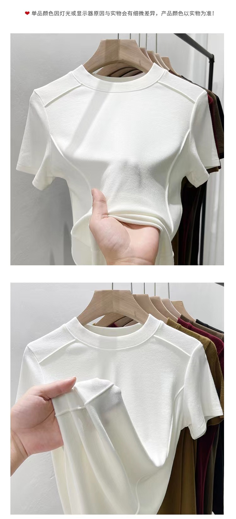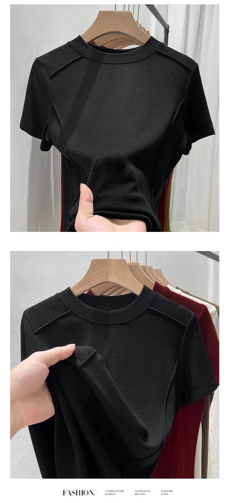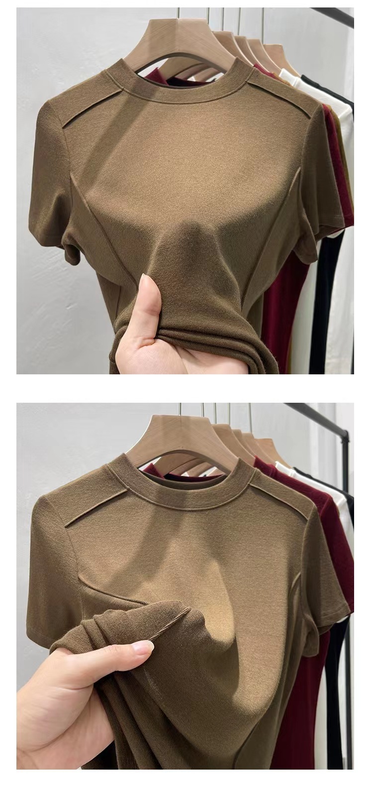 Kaos wanita lengan pendek model tulang ikan, kerah bulat, berbahan ribbed, ukuran plus, elastis, cocok untuk lapisan dasar atau outerwear, dengan nuansa mewah.