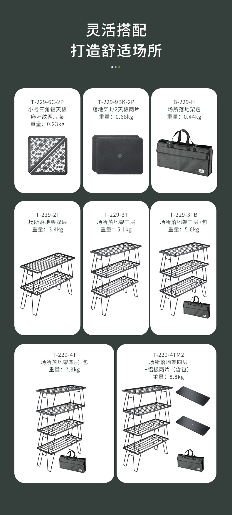 Coman T-229 rak lipat kombinasi besi piknik perjalanan luar ruangan rak penyimpanan portabel Kemah