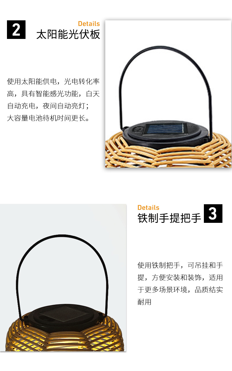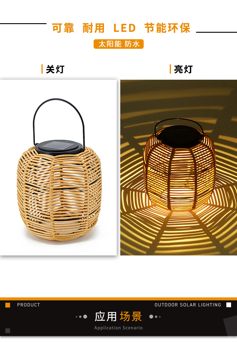 Lampu Taman tenaga surya rotan buatan tangan, lampu rumah led tahan air untuk taman halaman Restoran