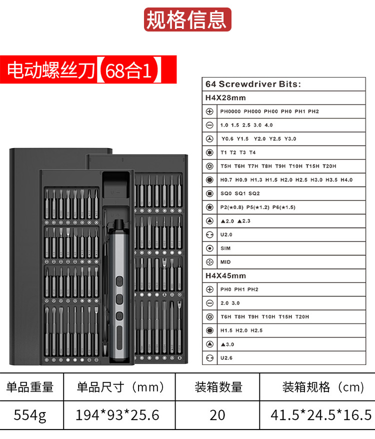 Set obeng multifungsi elektrik 68-in-1 terlaris lintas batas, dapat diisi ulang, tersedia, penjualan langsung dari pabrik, baterai lithium
