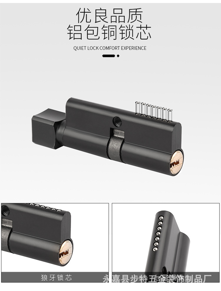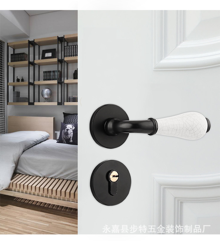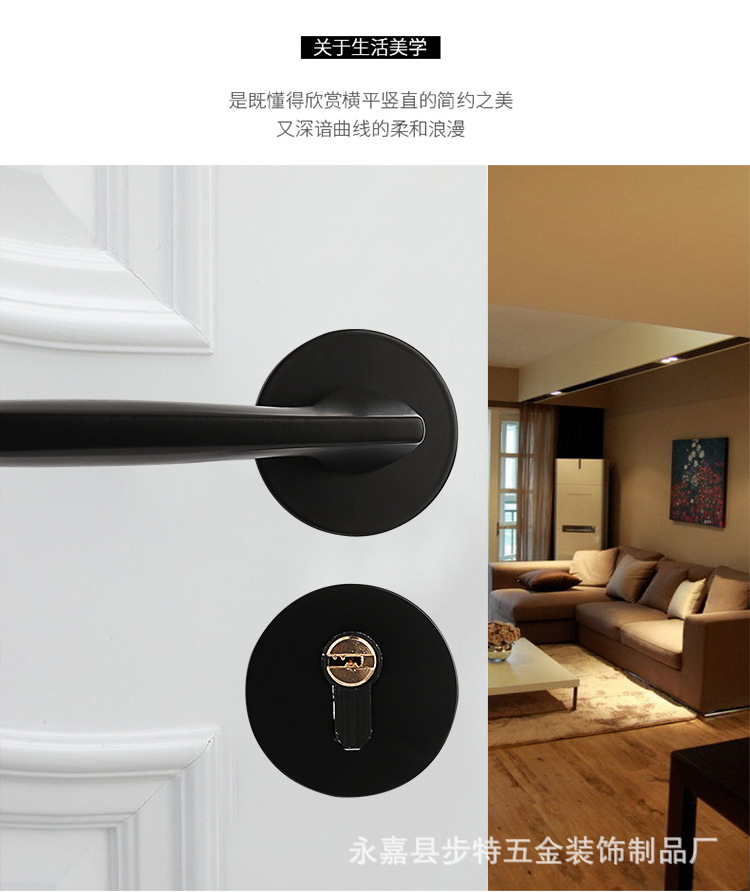 Kunci Pintu modern hitam dalam ruangan kamar tidur, kunci pintu magnetik terpisah pegangan pintu kayu solid, kunci rumah tangga grosir