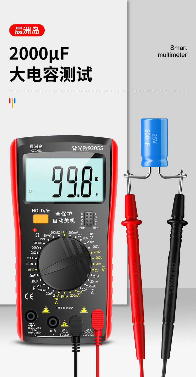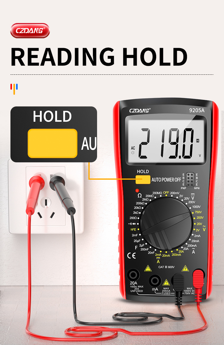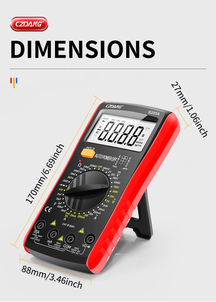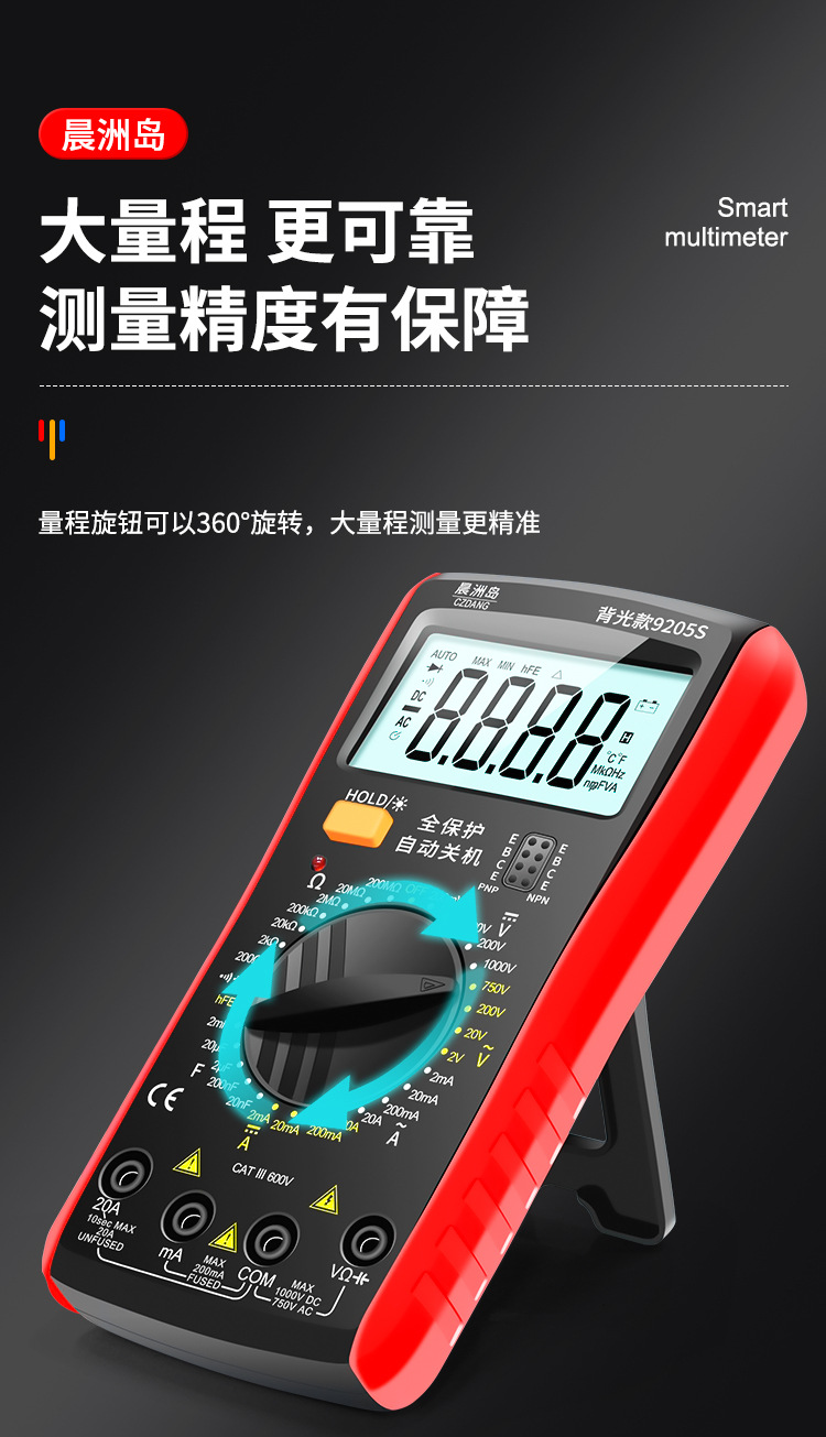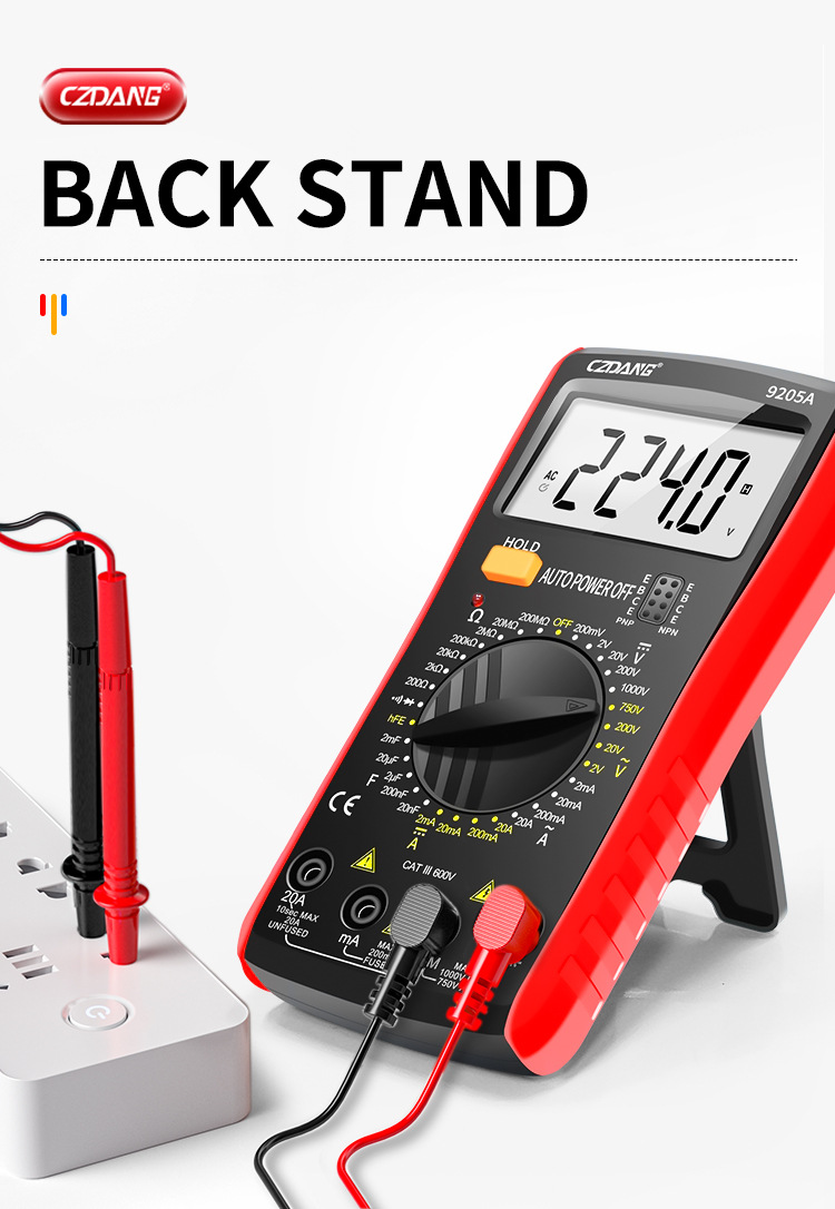 Chenzhou Island DT9205 multimeter elektronik, alat pengukur Listrik presisi tinggi dengan lampu latar digital universal anti bakar