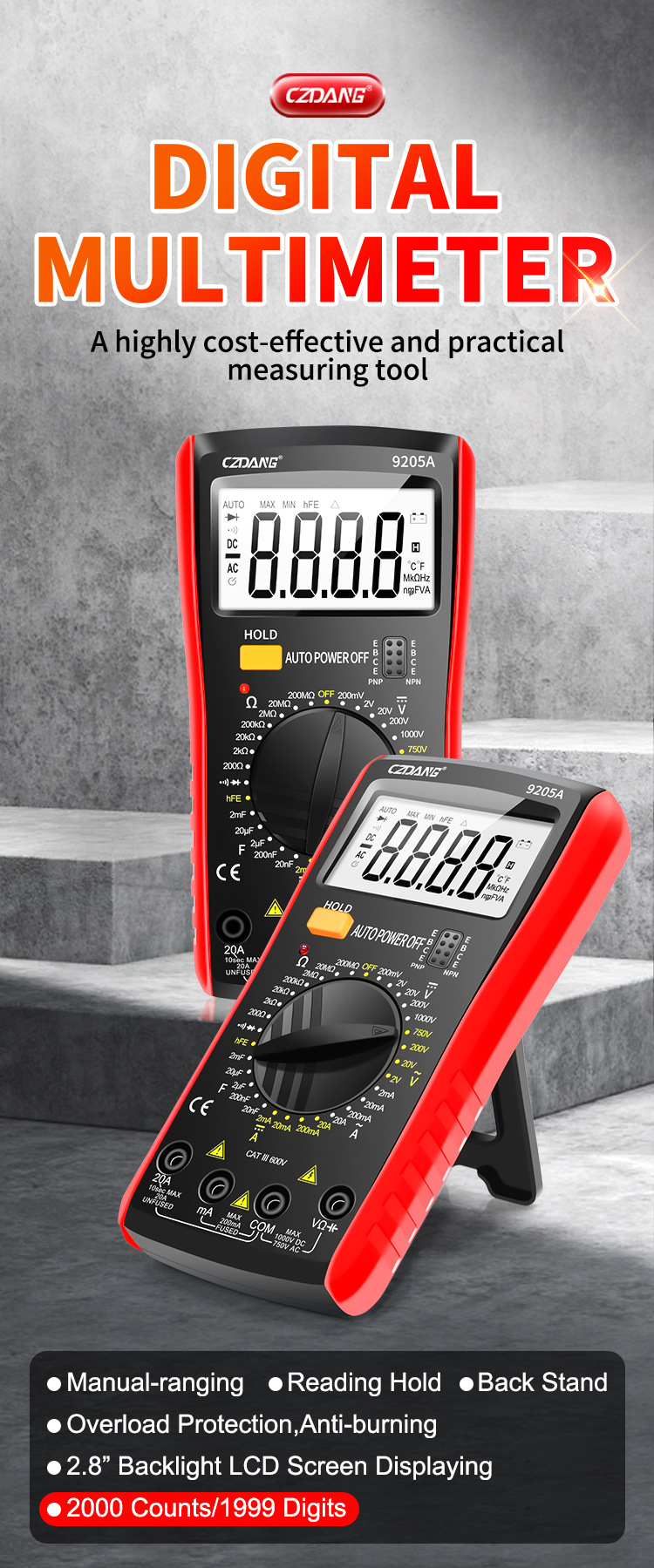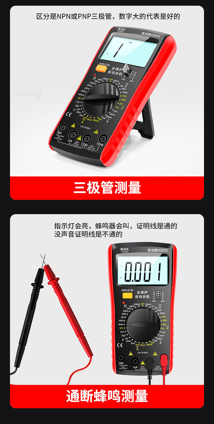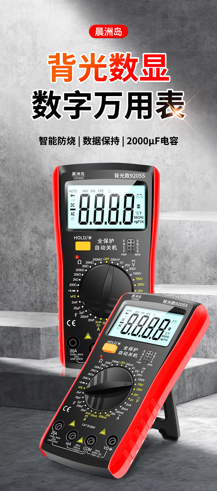Chenzhou Island DT9205 multimeter elektronik, alat pengukur Listrik presisi tinggi dengan lampu latar digital universal anti bakar