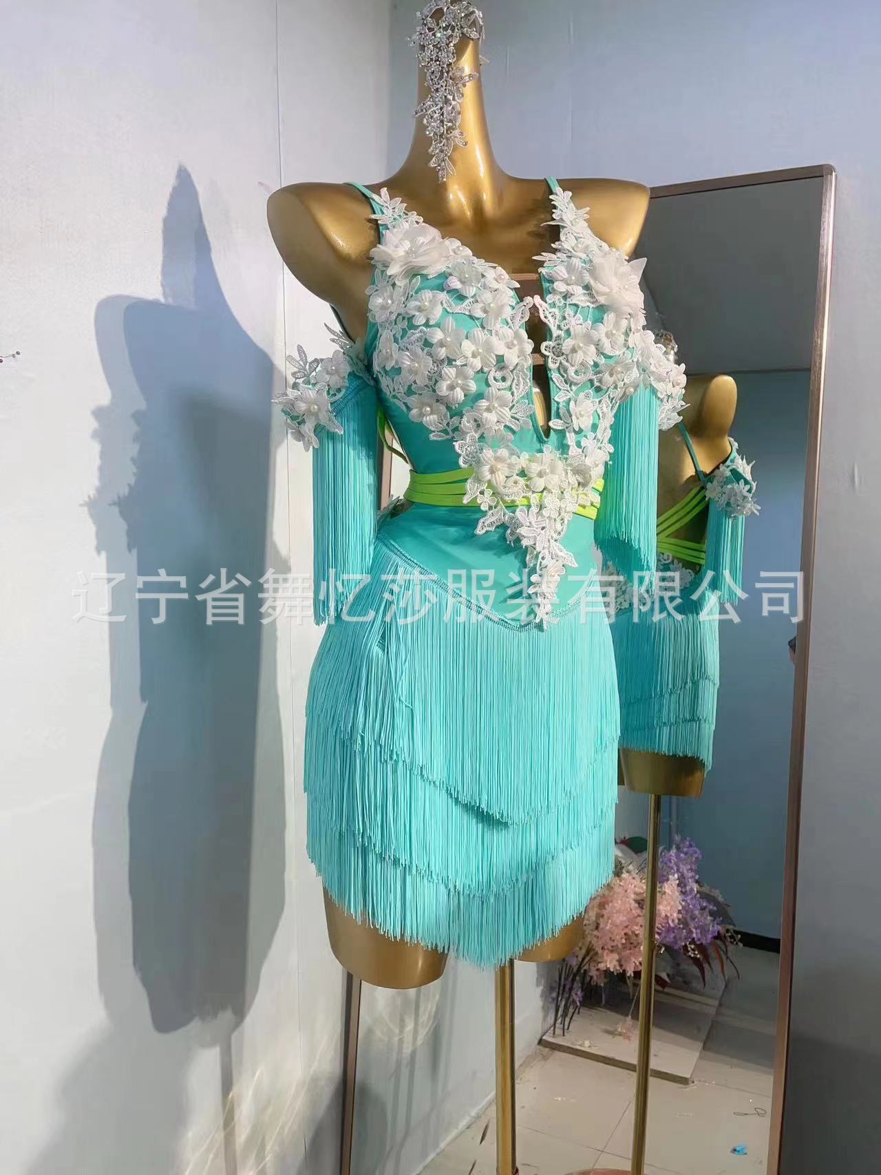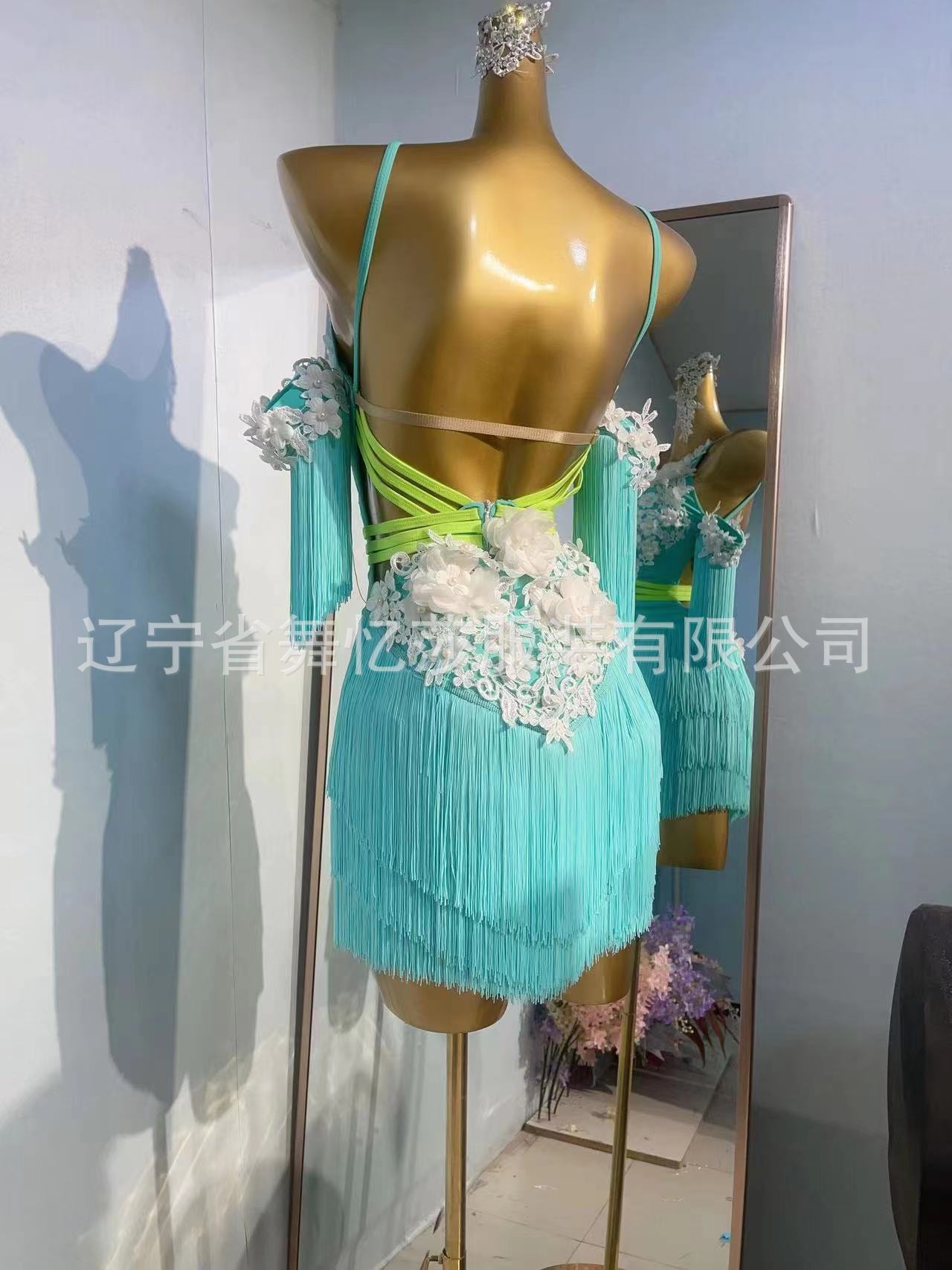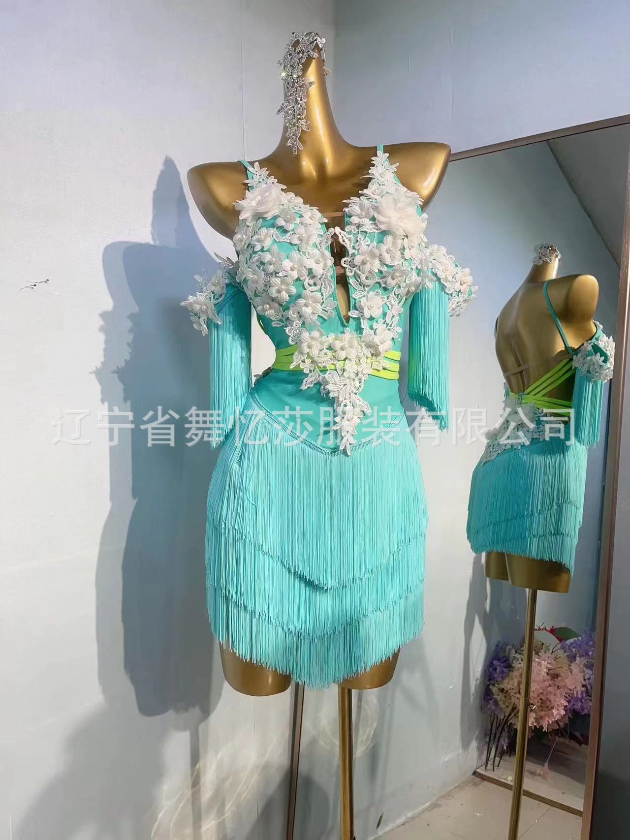 Pakaian tari Latin anak-anak gaya baru dengan payet berlian dan rumbai untuk pertunjukan dan kompetisi tari Latin anak perempuan.
